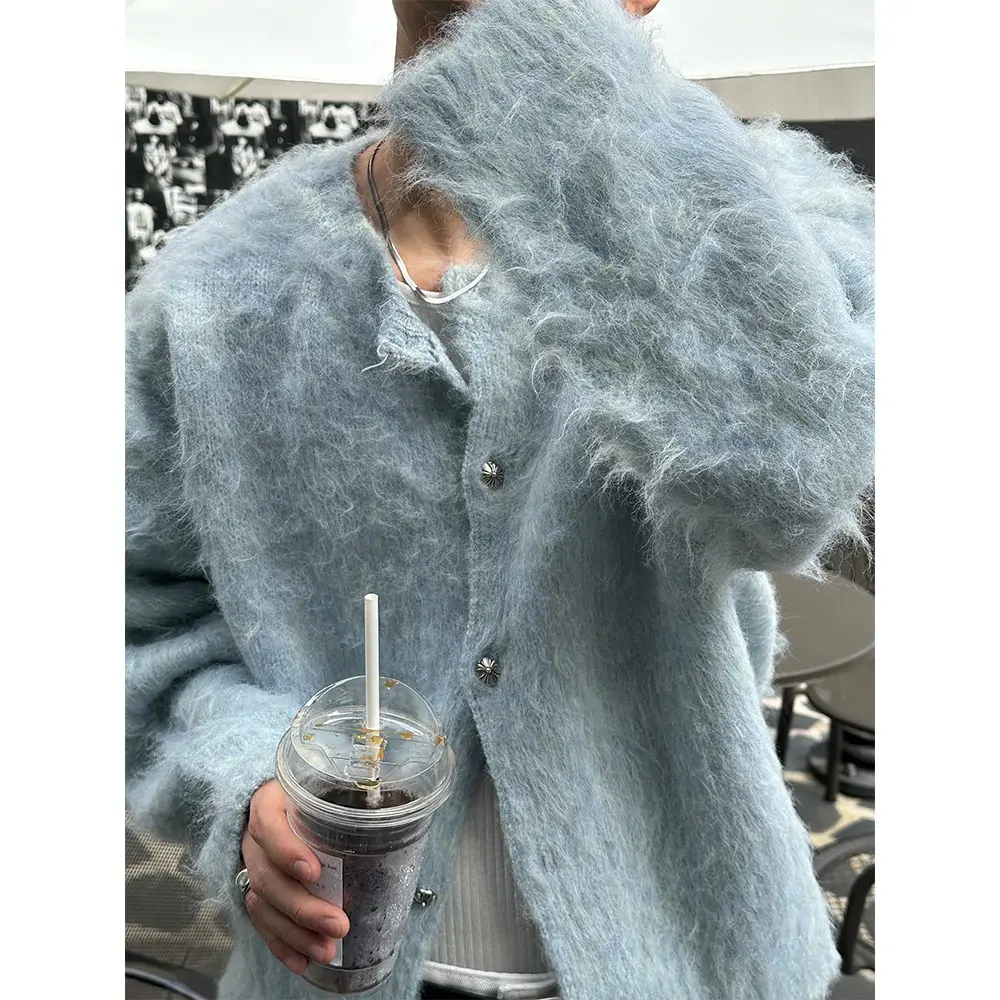 メンズのトレンドファッションをパッと華やかに見せてくれるのは、LAURANT051(ロラン051)のウールヘアリーラウンドネックカーディガン。存在感たっぷりのカーディガンで、コーデの主役としてロングシーズン活躍してくれます。白Tやデニムといった王道アイテムとも相性が良く、デイリールックをワンランク格上げしてくれる使い心地も魅力です。