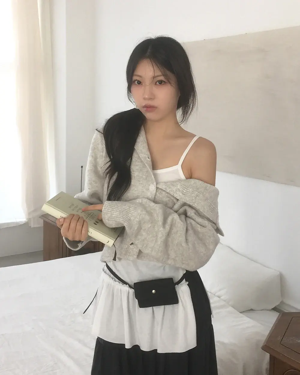 WONDER WONDER(ワンダーワンダー)のフォトンハイネックボタンフードカーディガンは、ヘルシーにもカジュアルにも化ける着回し力の高さがポイント。アイコニックなフードを強調しながらラフに着こなしたり、ボタンを開けてワンショルダーで着こなしたりと、着方次第で別の印象に見せてくれるんです。