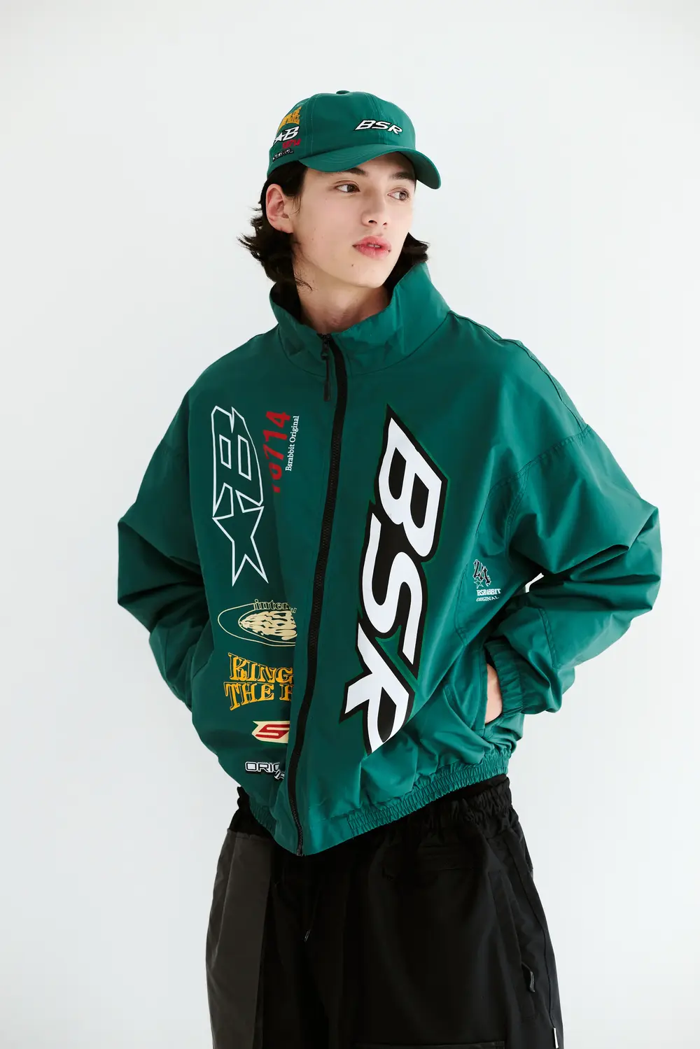 韓国トレンドのスタイリングを一発で叶えたいときにハマるのが、BSRABBIT(ビエスラビット)のBSR スポーティートラックジャケット。パンツのあるロゴデザインを洒落感たっぷりなグリーンで取り入れられる、注目ブランドのヒットアイテム。