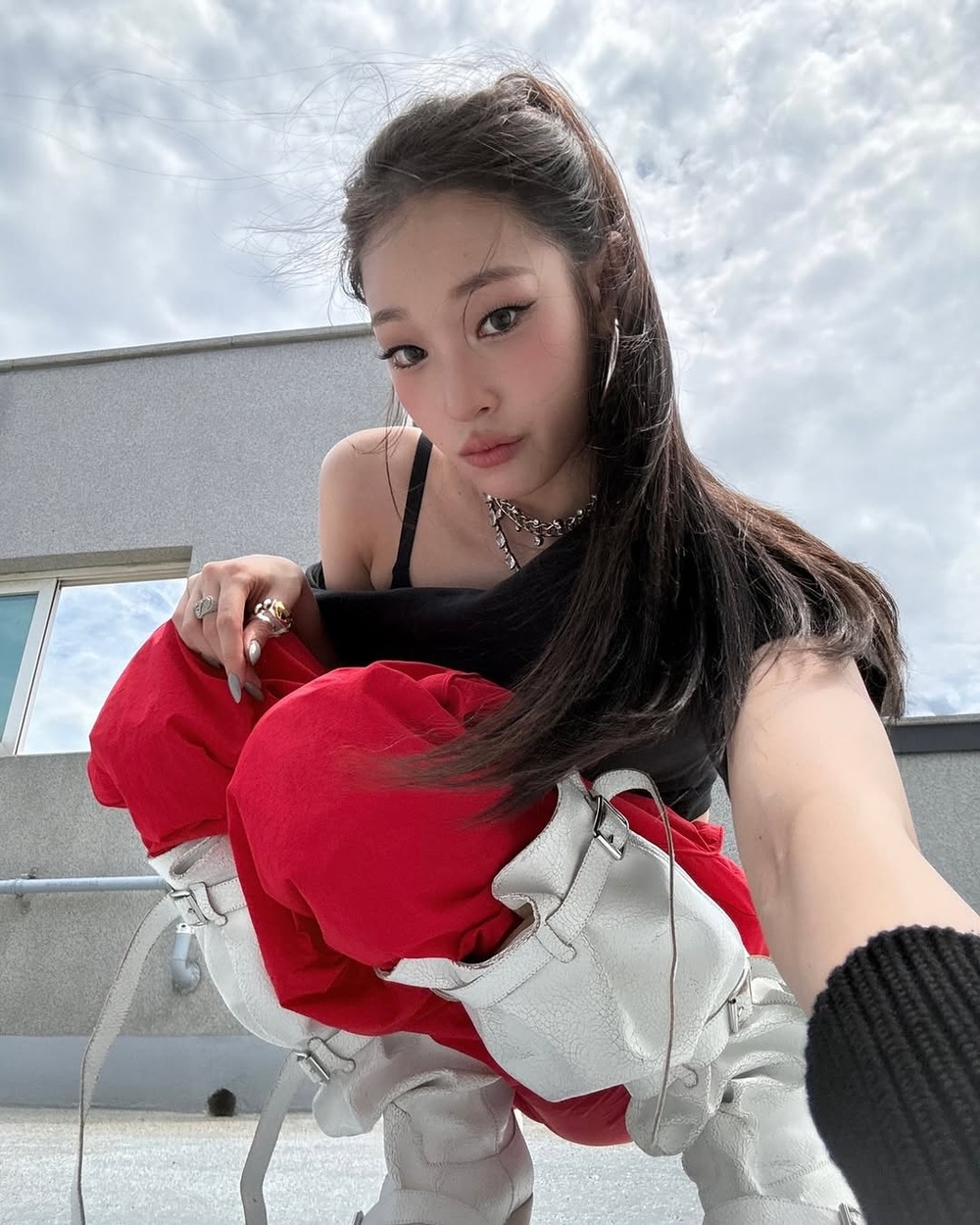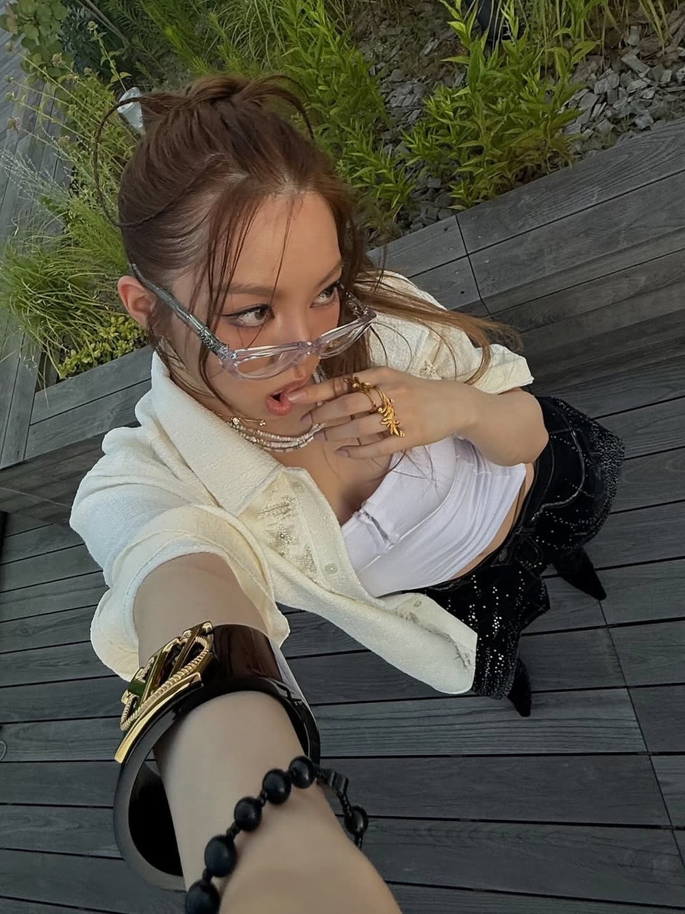 ヨンソは、ストリート × フェミニンのミックスなかわいさとカッコよさを兼ね備えたスタイル!真珠付きジャケットのようなフェミニン要素と、ショートパンツ・柄ストッキングといったストリート感を組み合わせ!♡