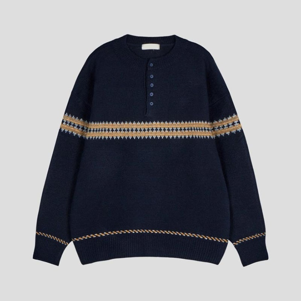 ASCLO チェーンヘンリーネックニット (4color)