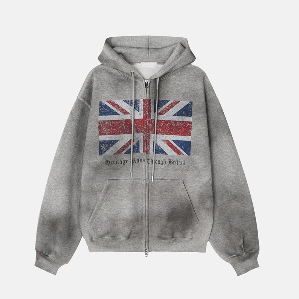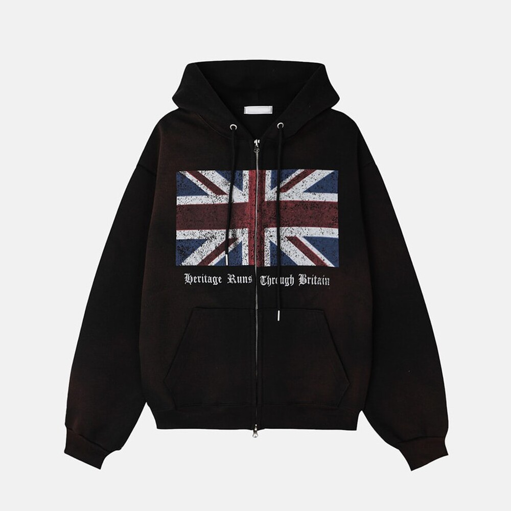 ASCLO UKペイントウォッシュフードジップアップ (2color)