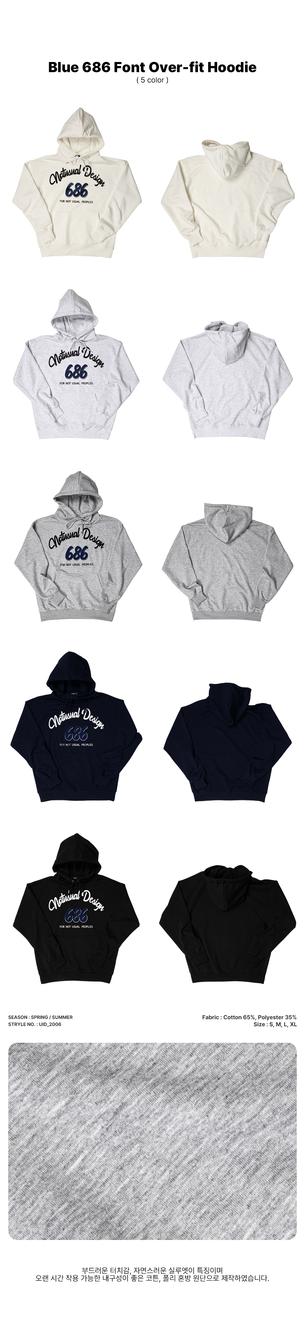 ブルー 686 フロントオーバーフィットフーディ - 5COLOR