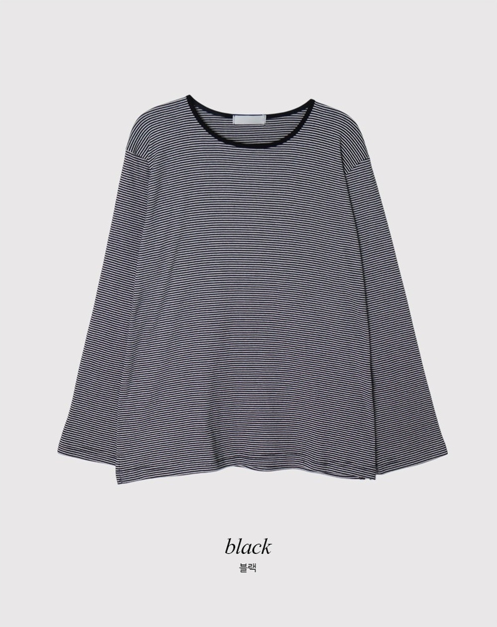 ボーダーコットン100 ルーズラウンドTシャツ (3color)