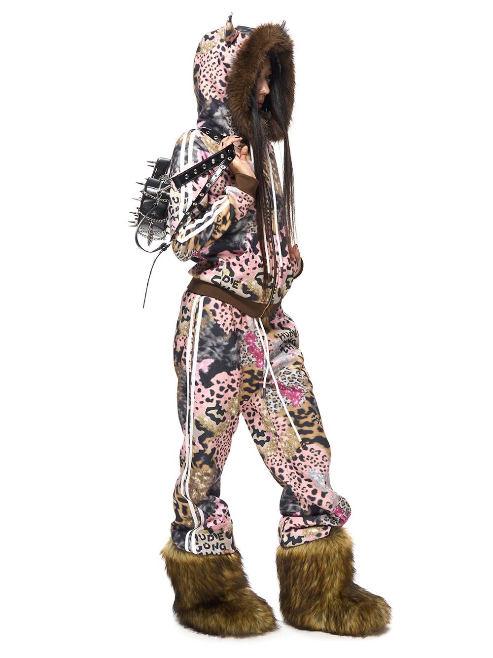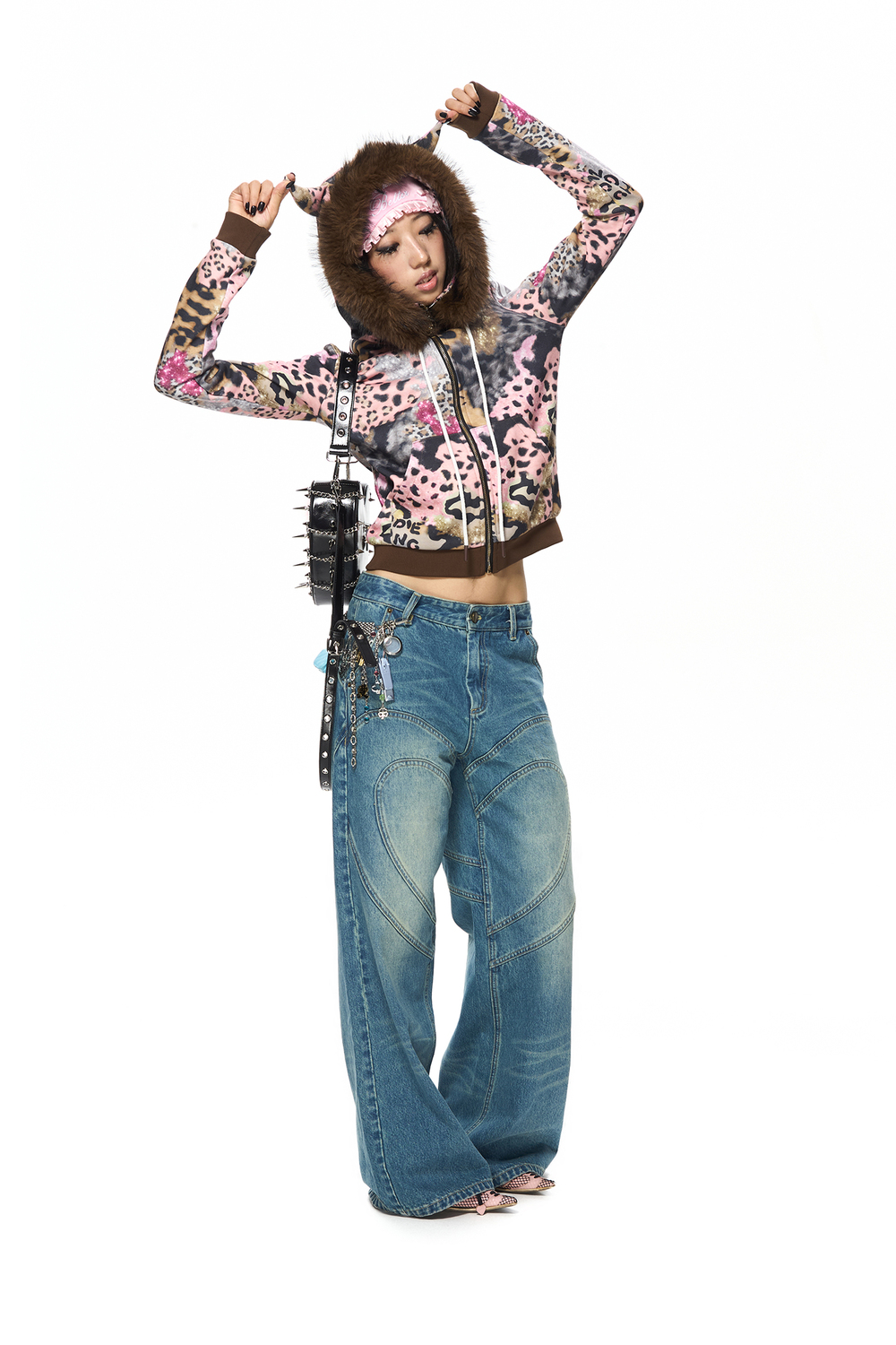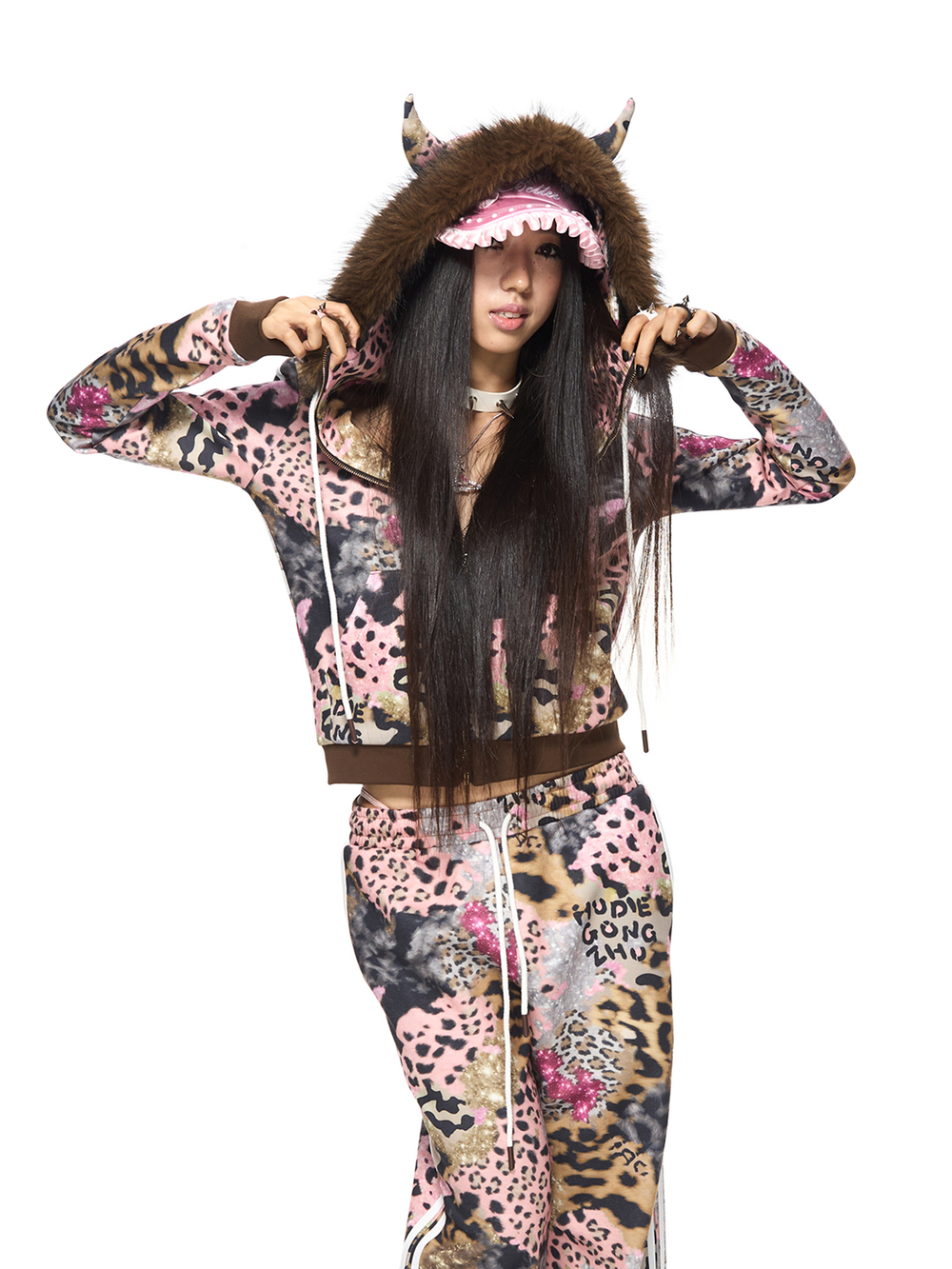 ブラウンレオパードプリントフーディー