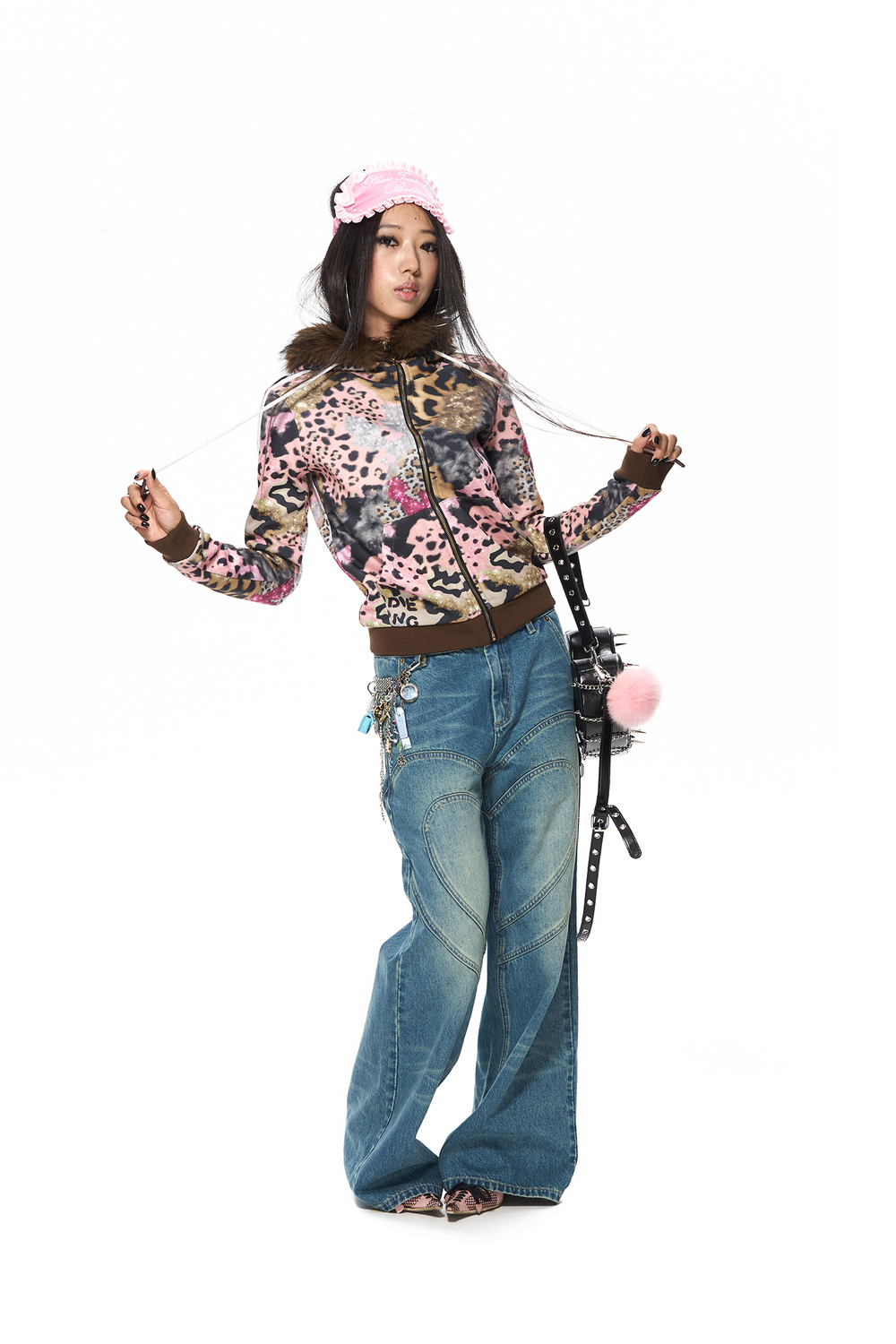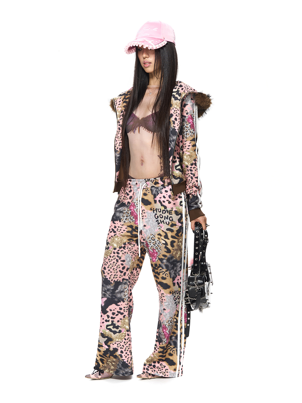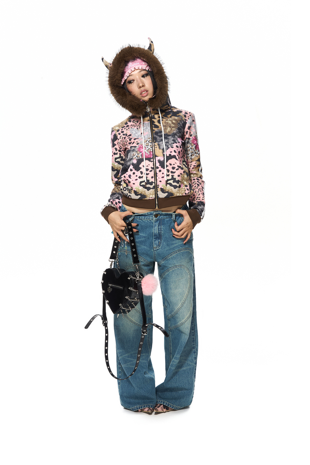 ブラウンレオパードプリントフーディー