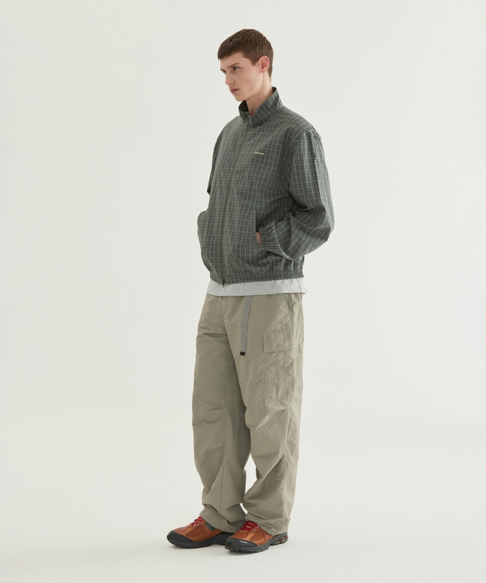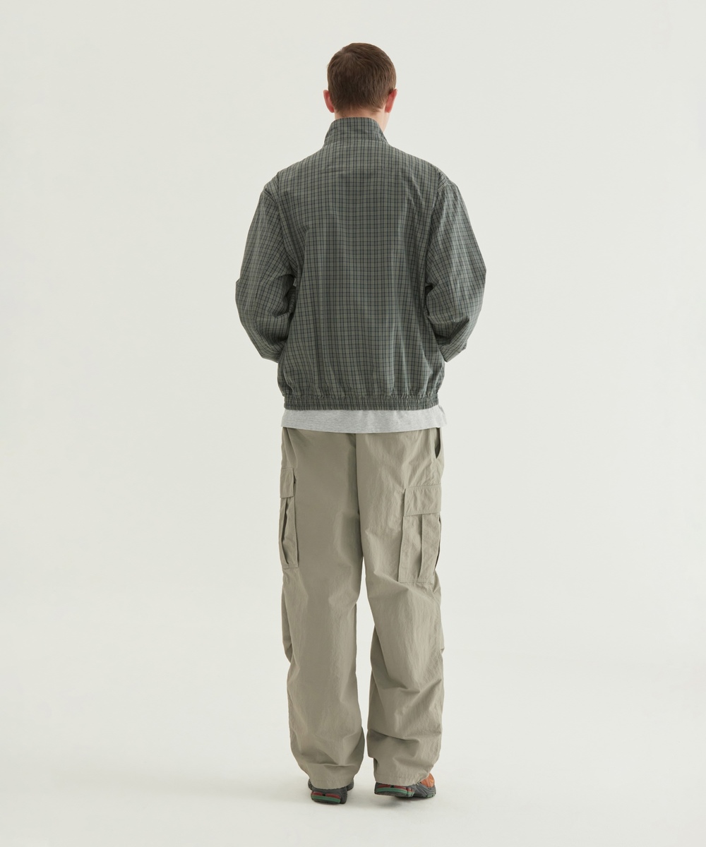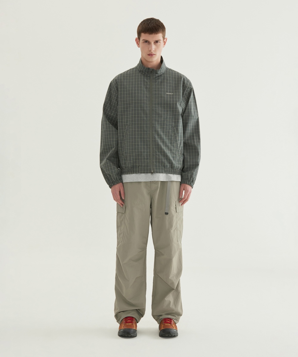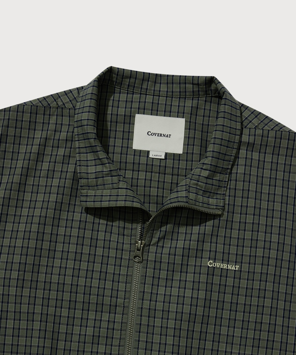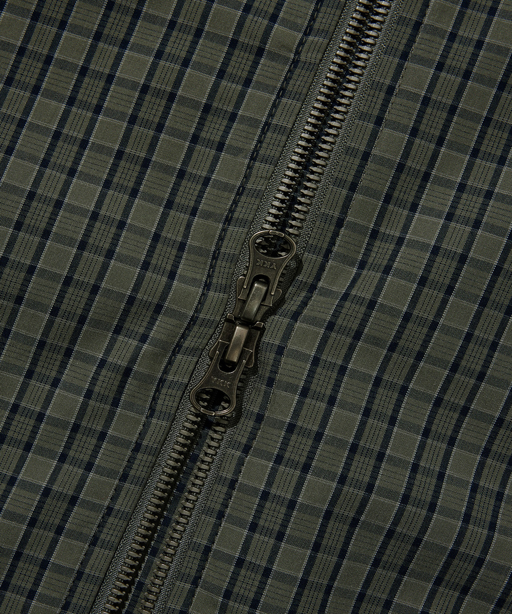 チェックドコットンブルゾン - カーキ
