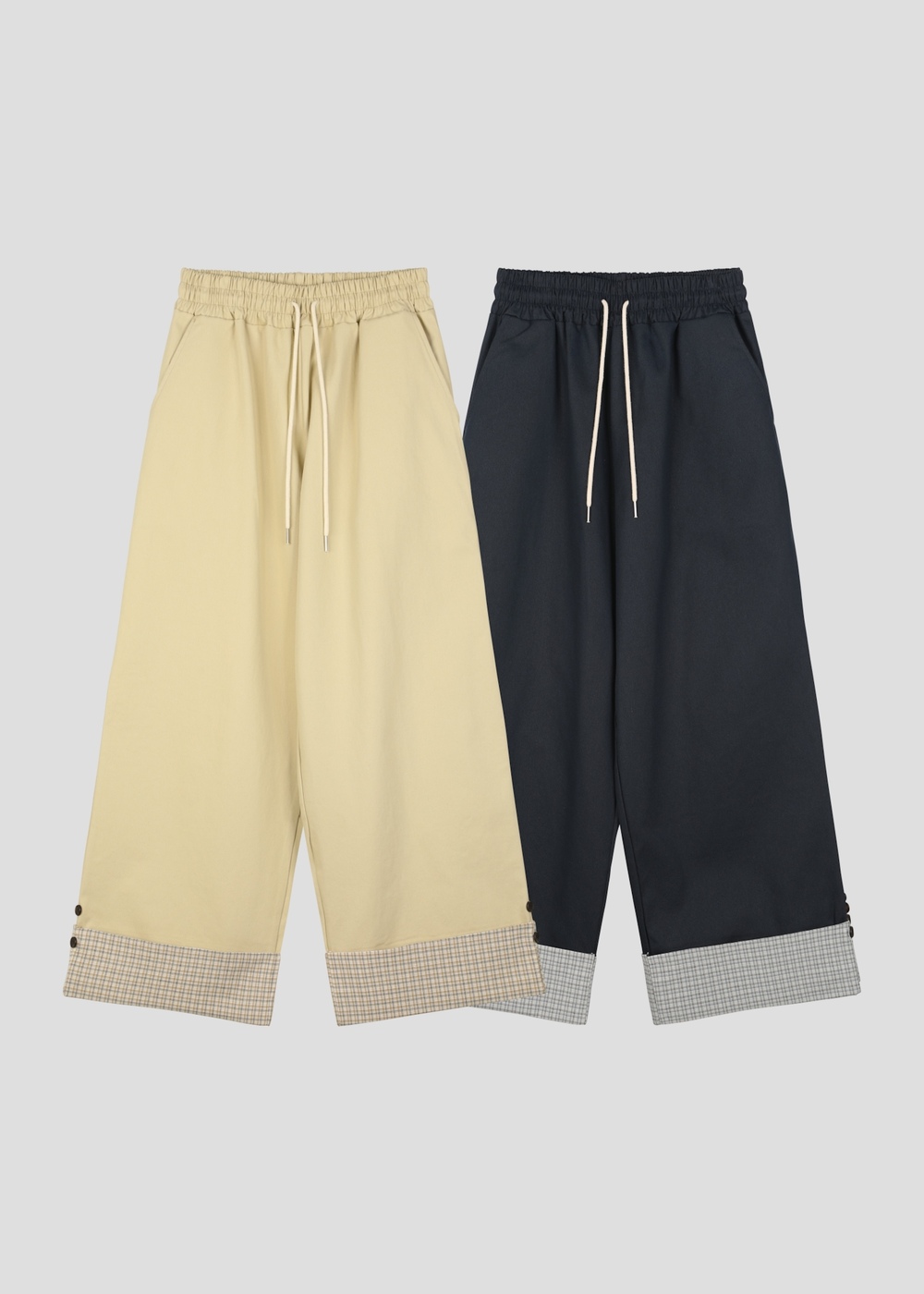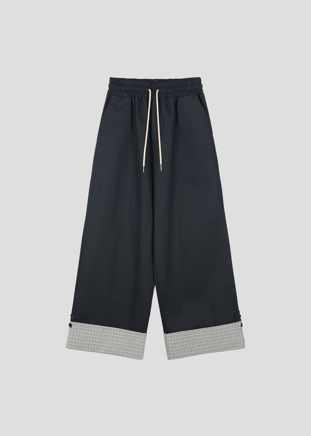 チェックボタンロールアップワイドパンツ (2c)