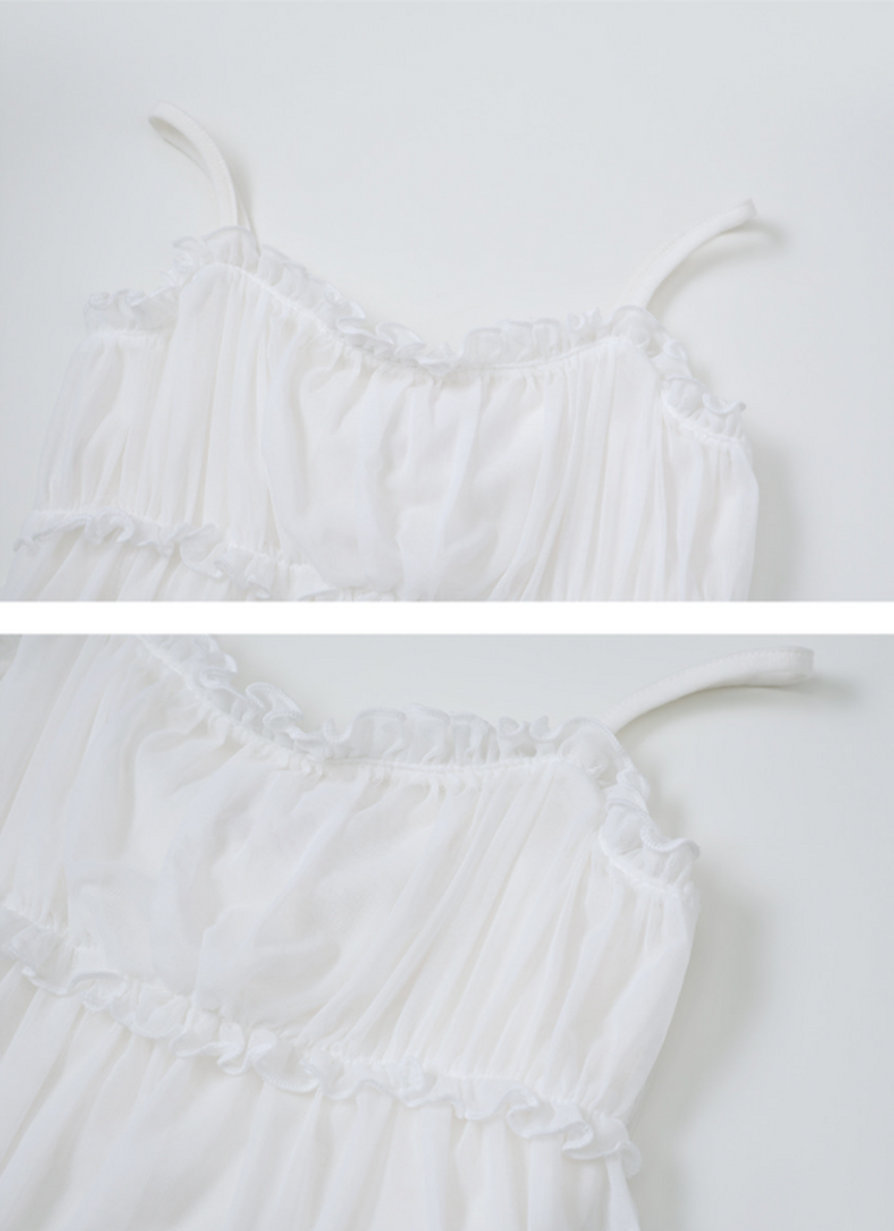 シフォンレイヤードフリルスリーブレスブラウス (2color)