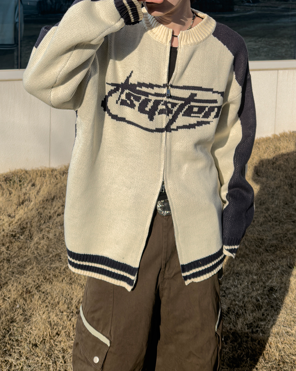 Corel ツーウェイ ラグラン ニット ジップアップ