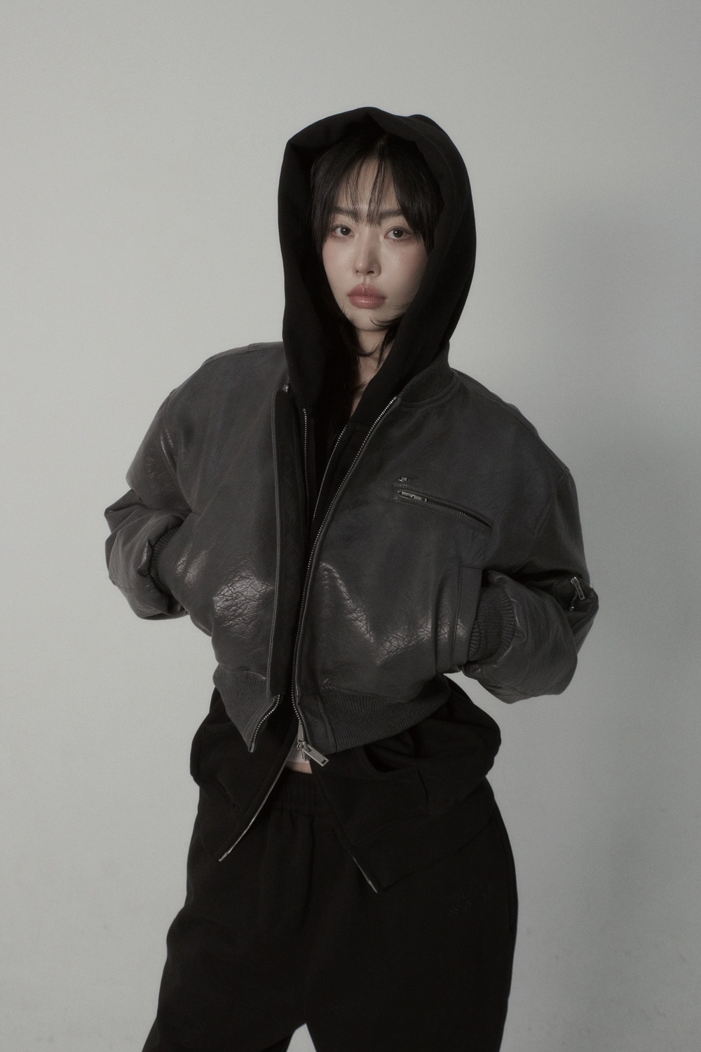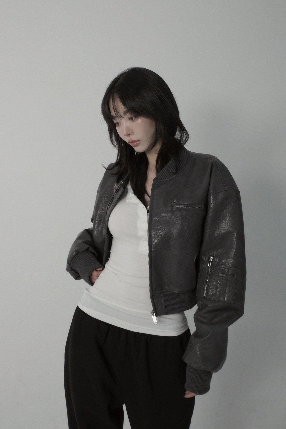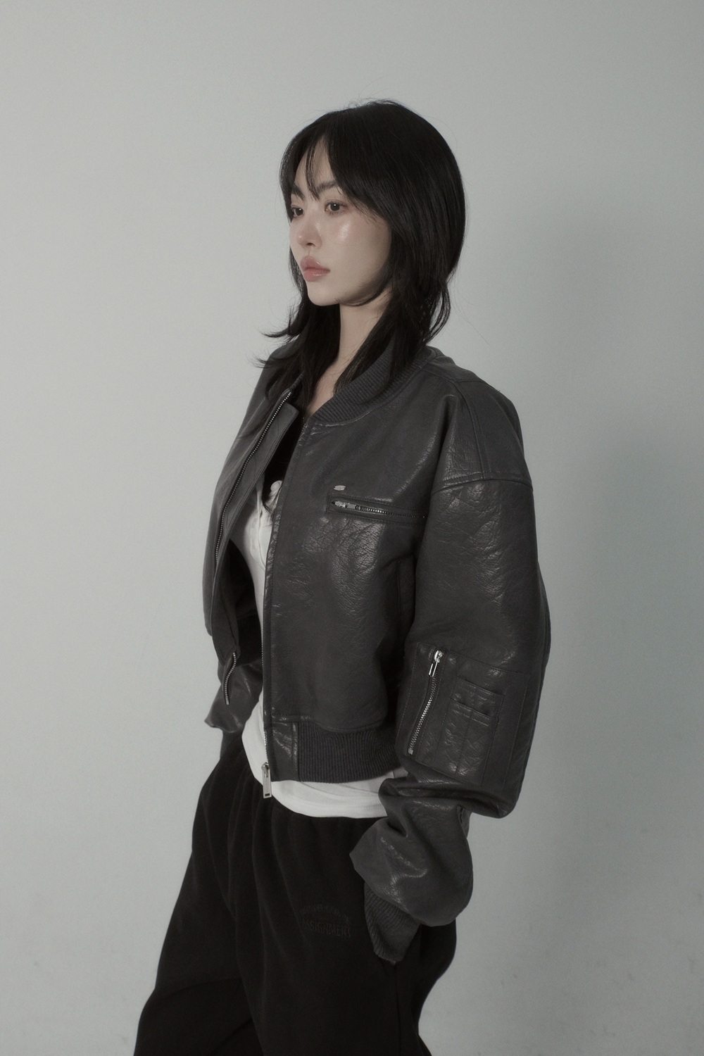 Crop Leather Bomber Jumper