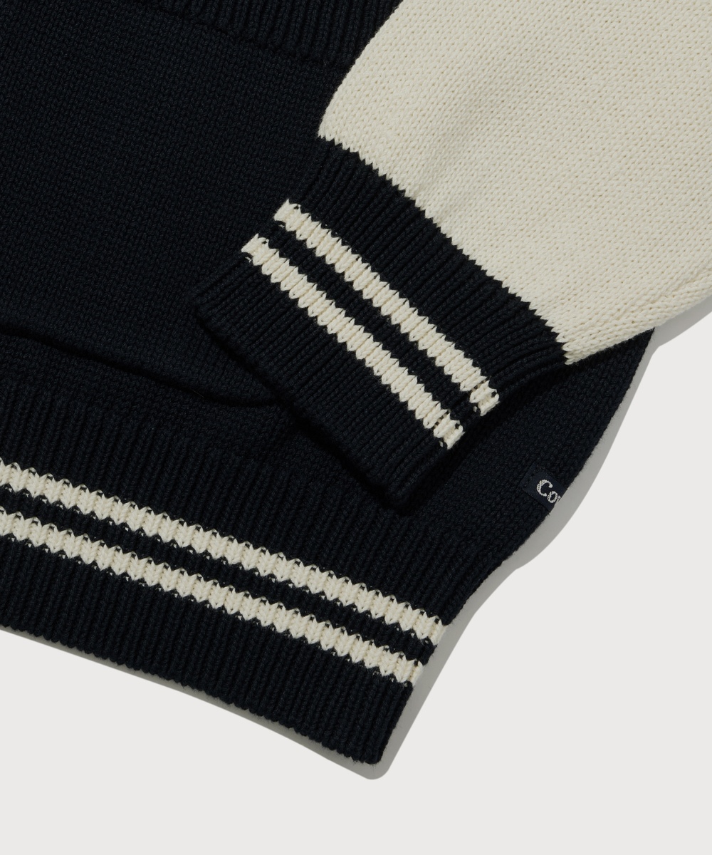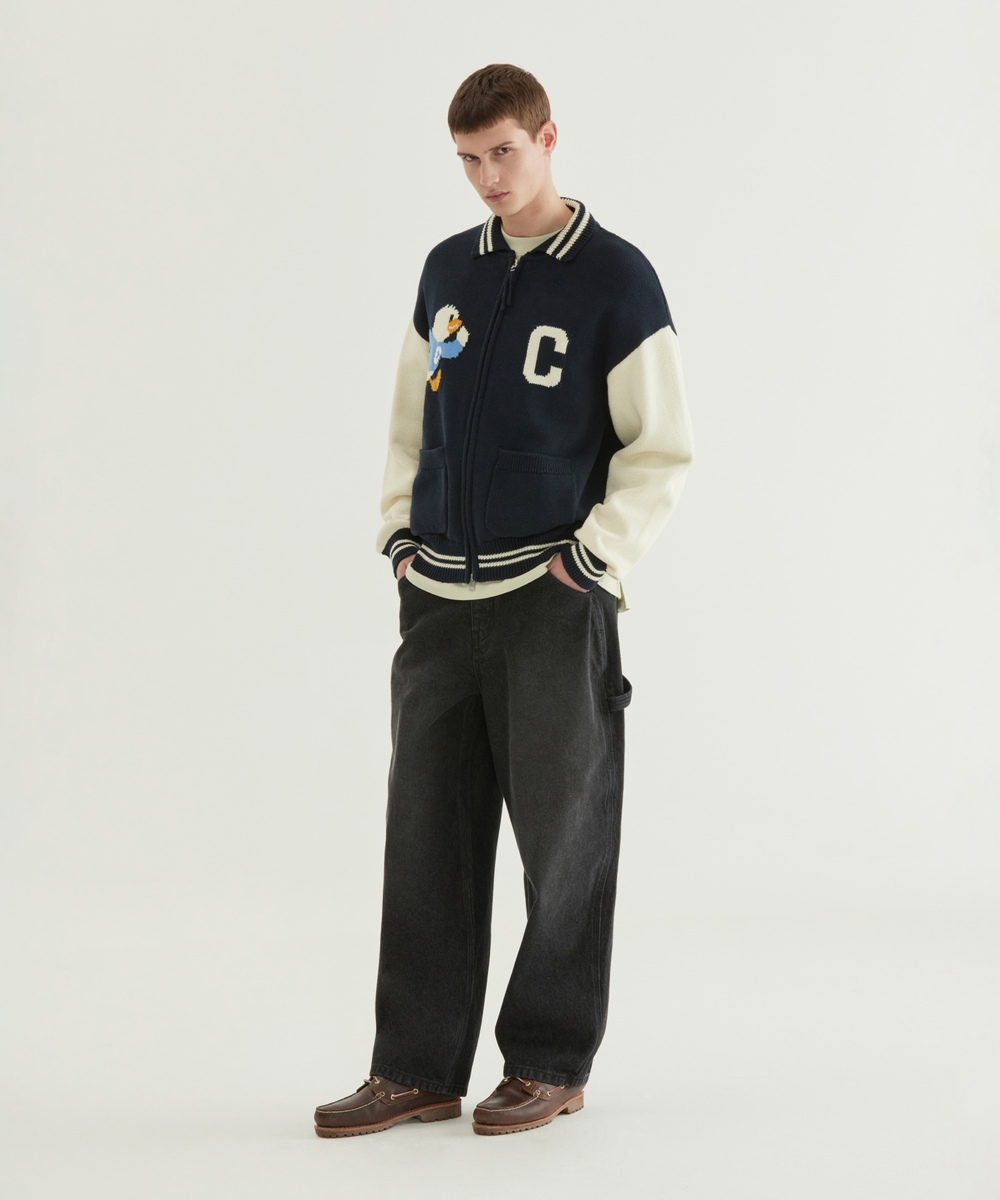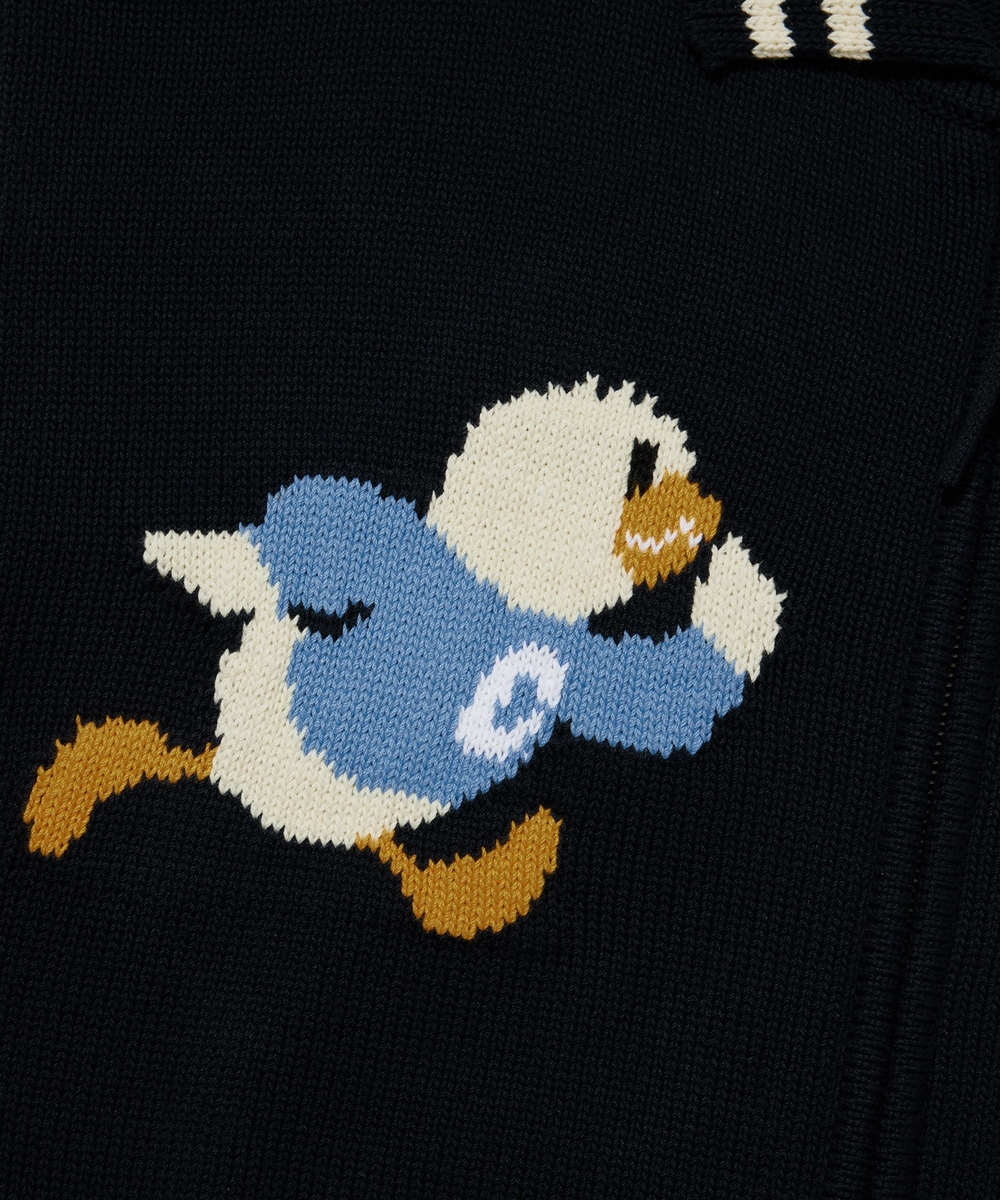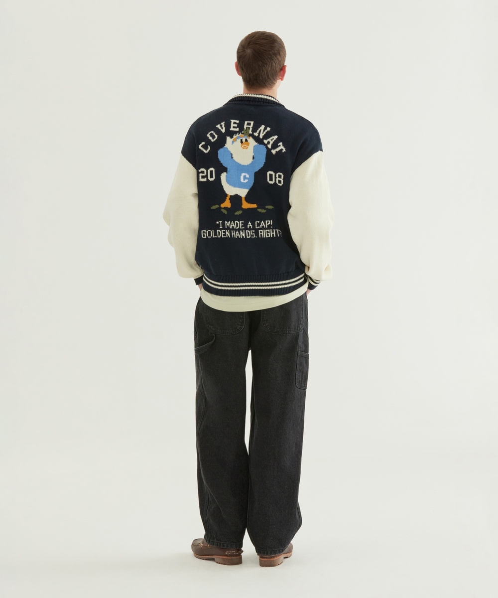 ダック グラフィック ニット バーシティ ジャケット - ネイビー