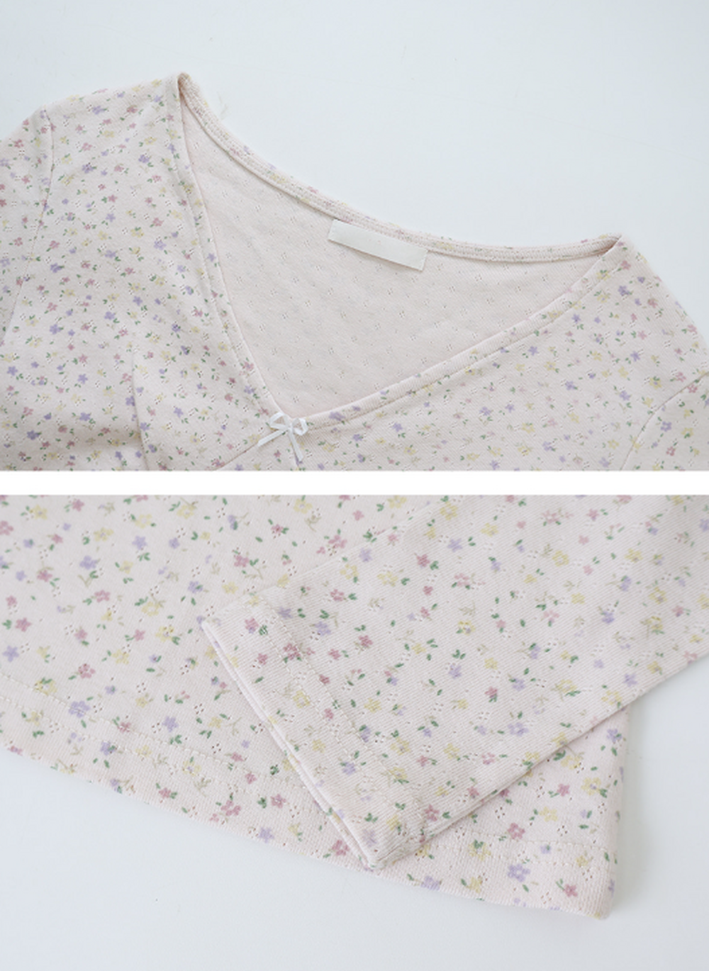 フラワーリボンコットン100アイレットTシャツ(3color)