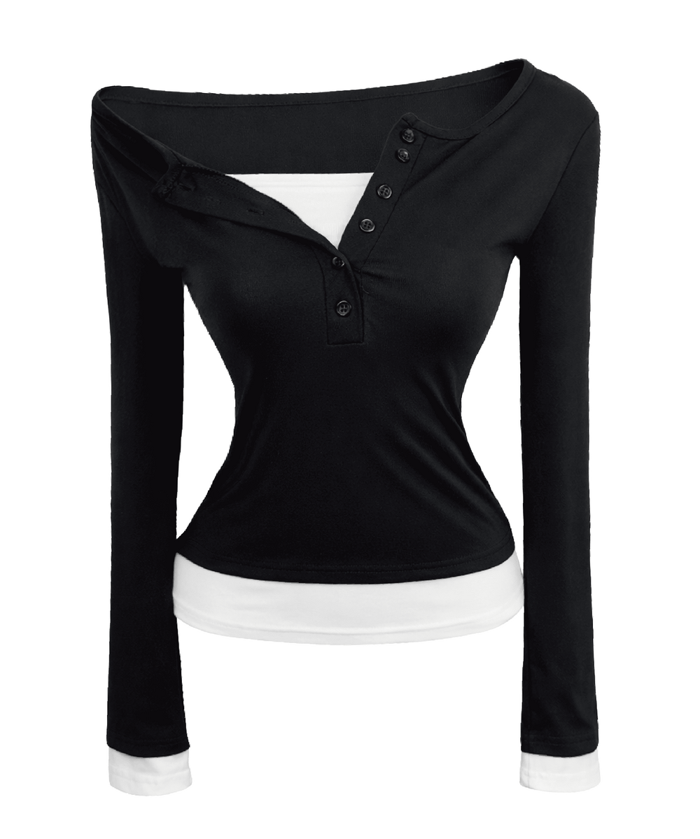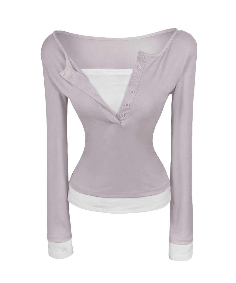 ケーシーレイヤードUネックボタントップ (3color)