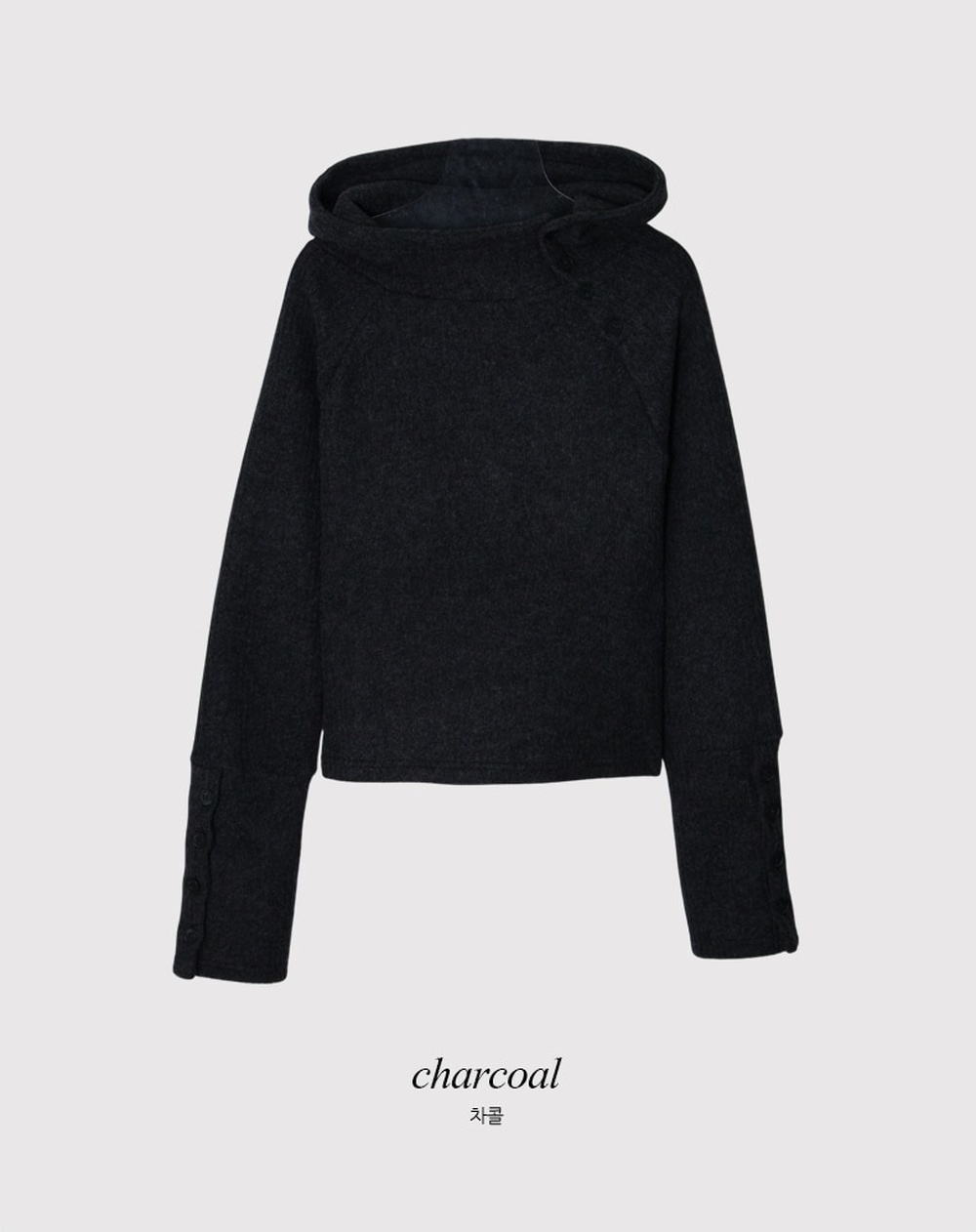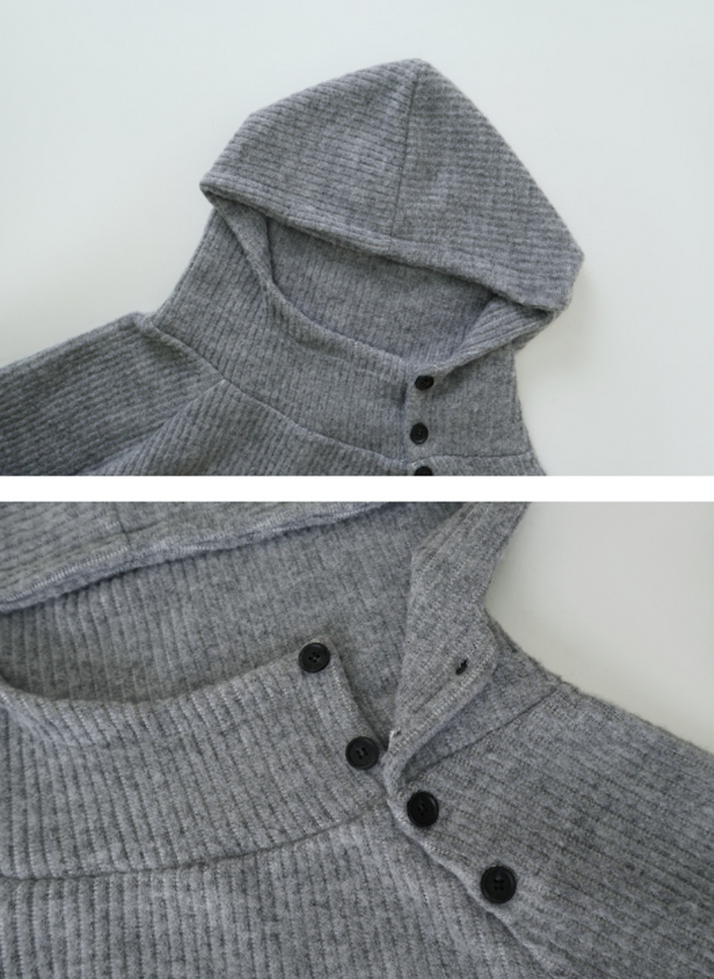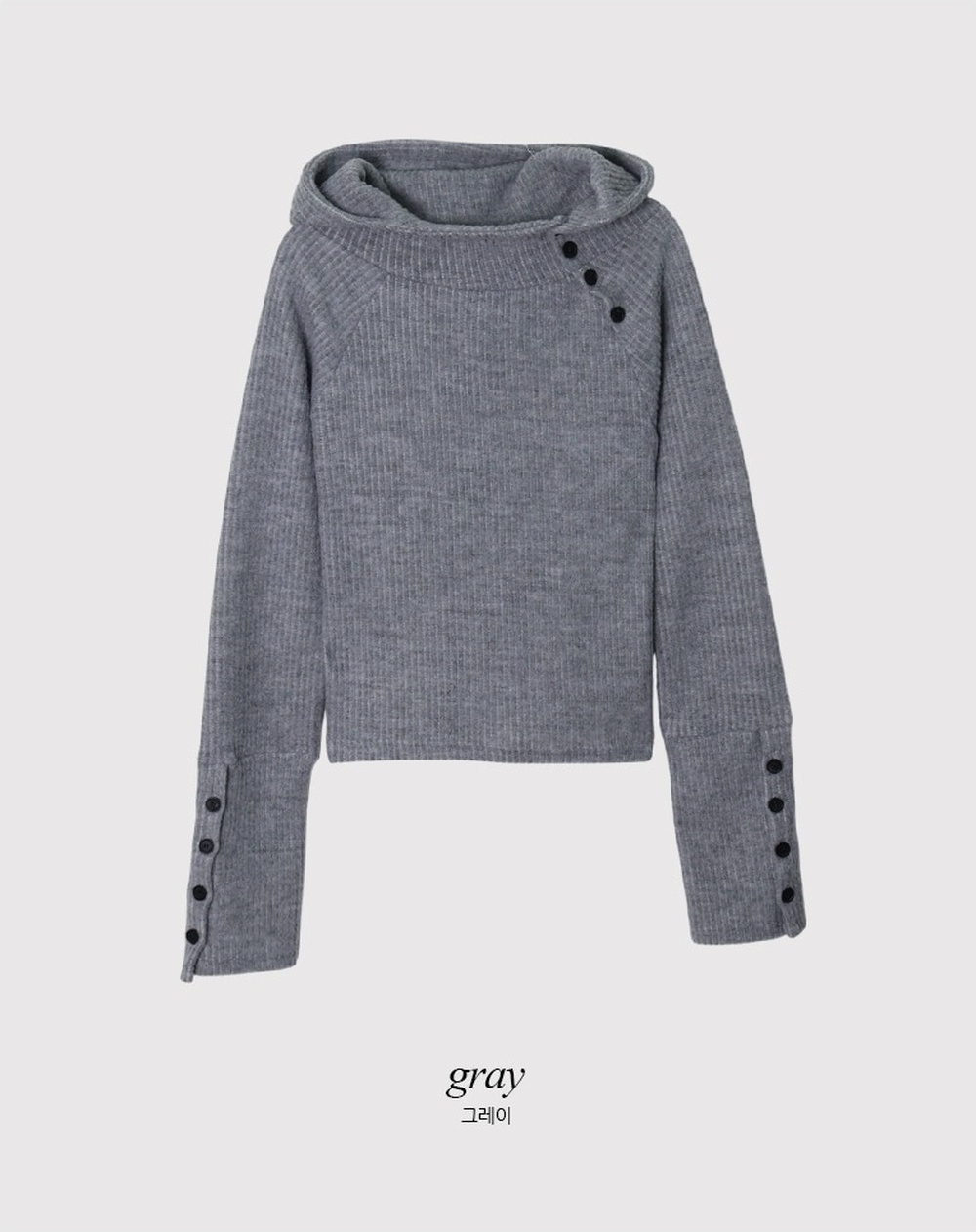 KIダイアゴナルハイネックボタンフードニット (4color)