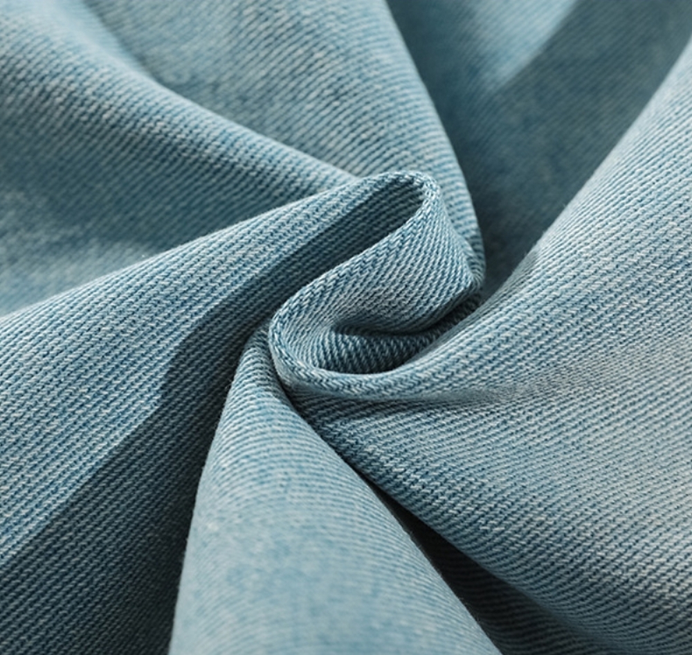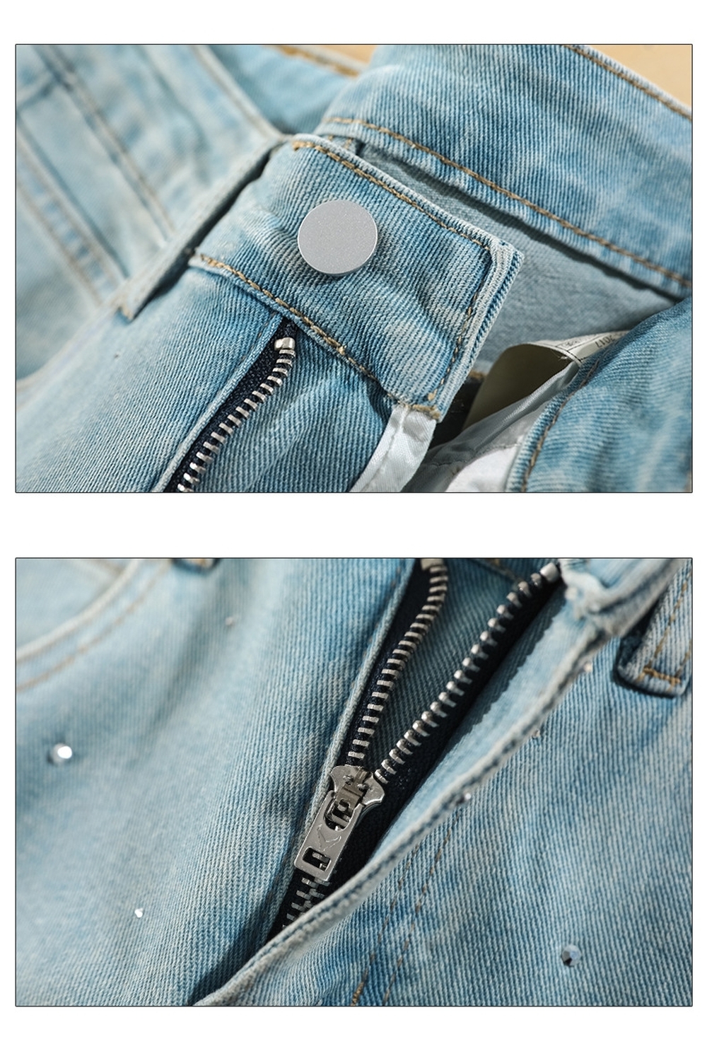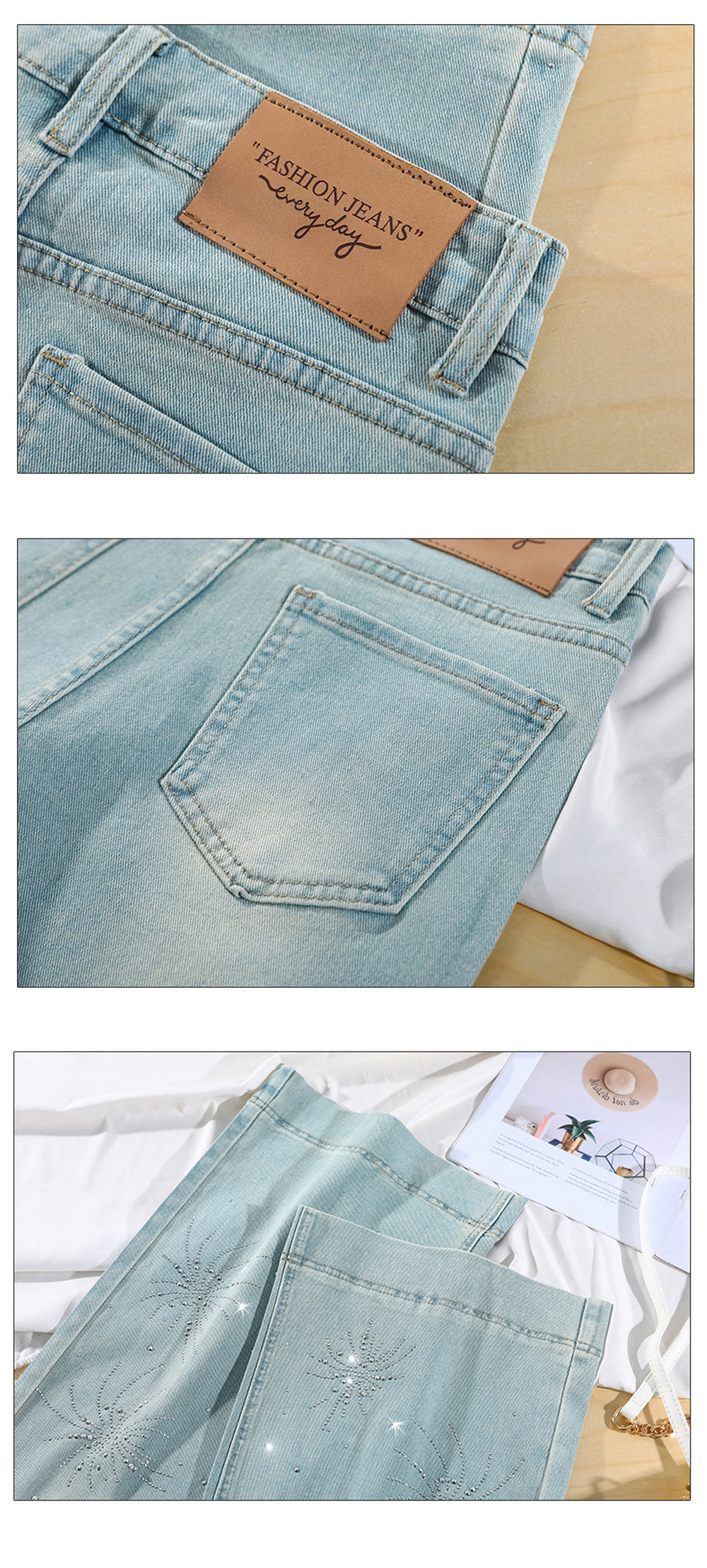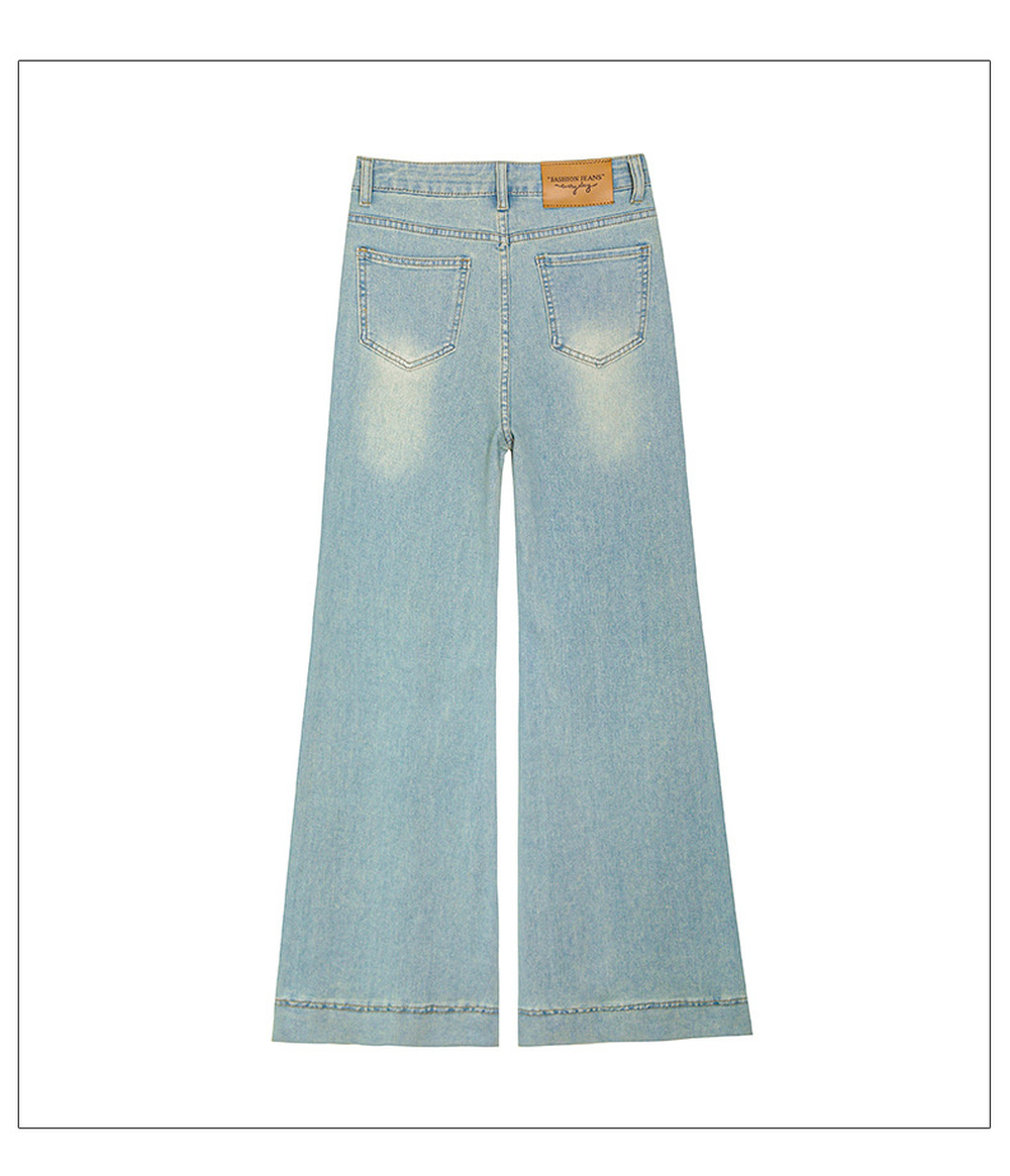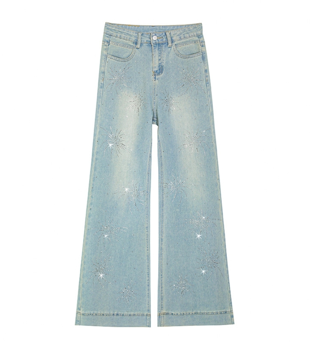 ライトウォッシュラインストーンマイクロフレアジーンズ