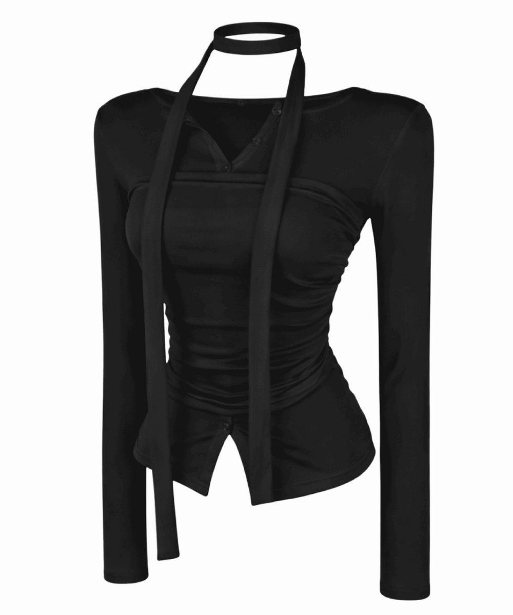ルナレイヤードボタンスカーフトップ (2color)