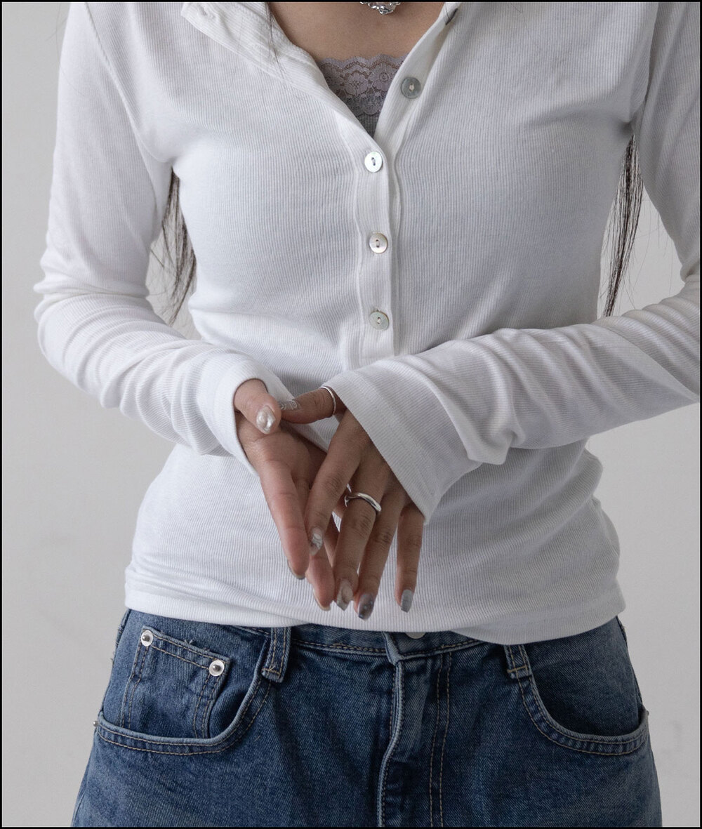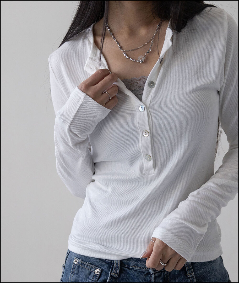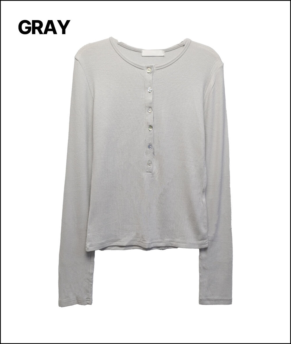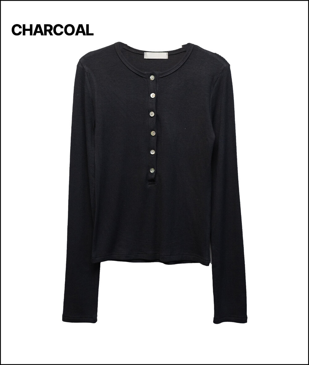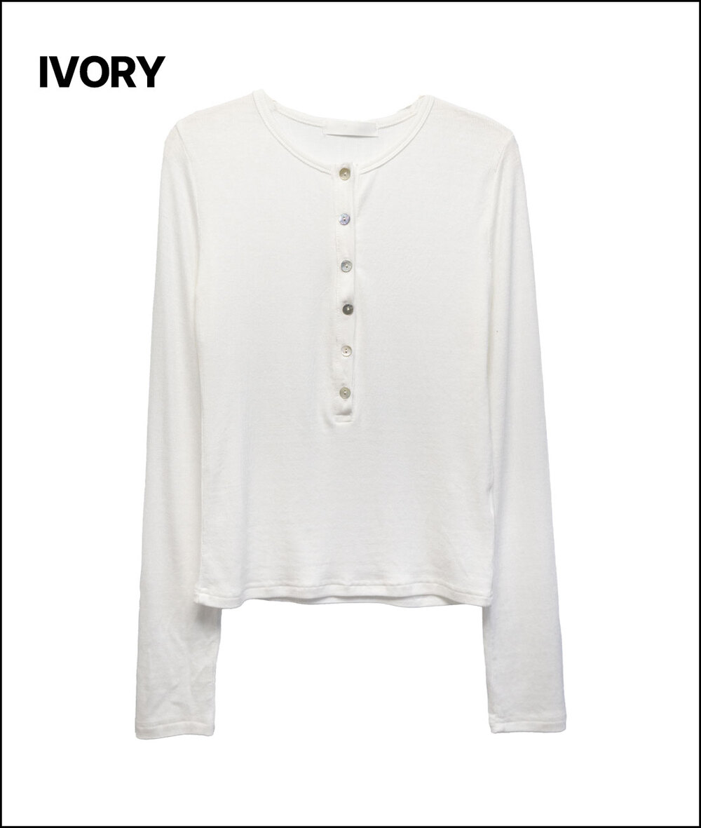モンクマザーオフパールボタンヘンリーネックロングスリーブTシャツ