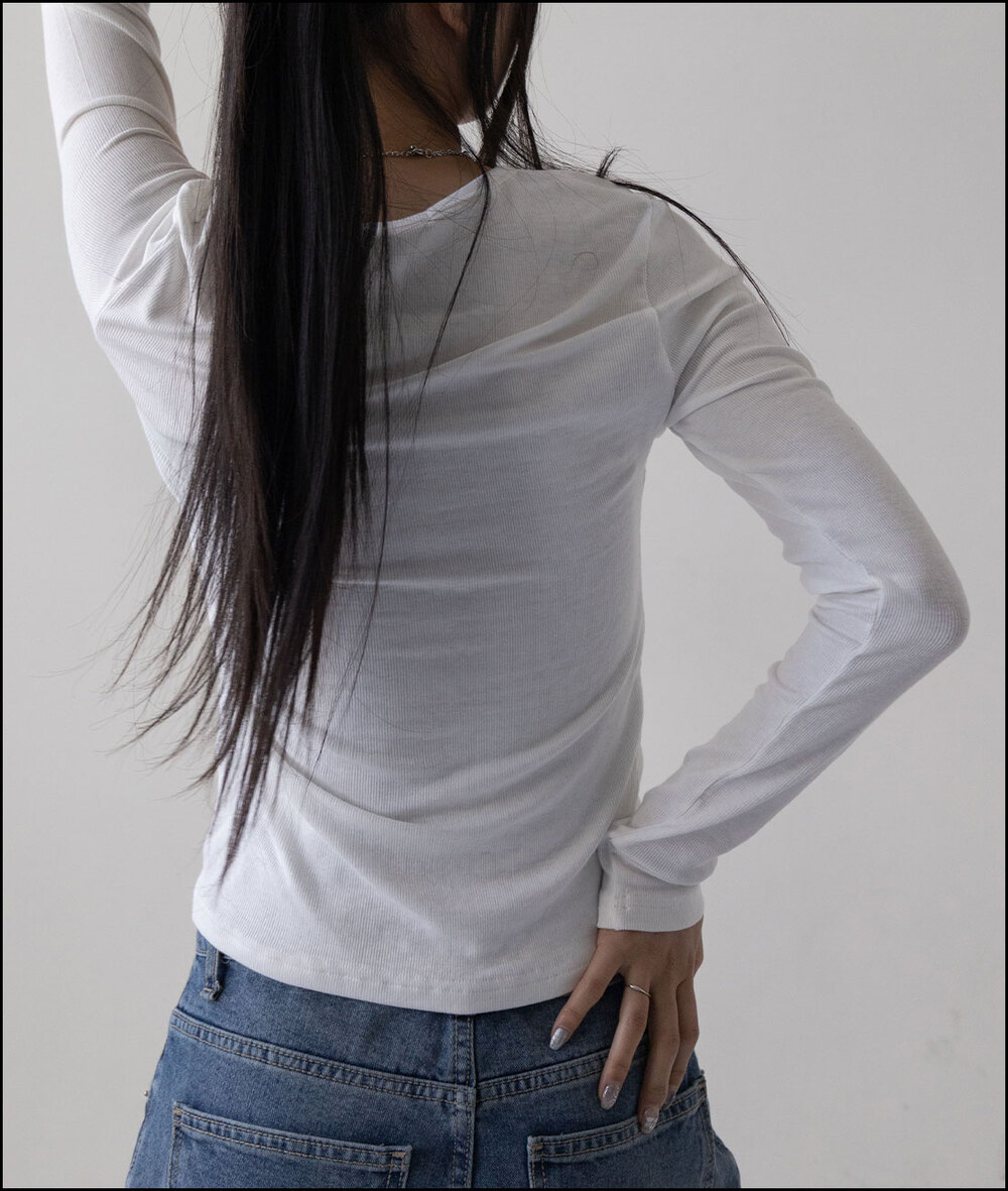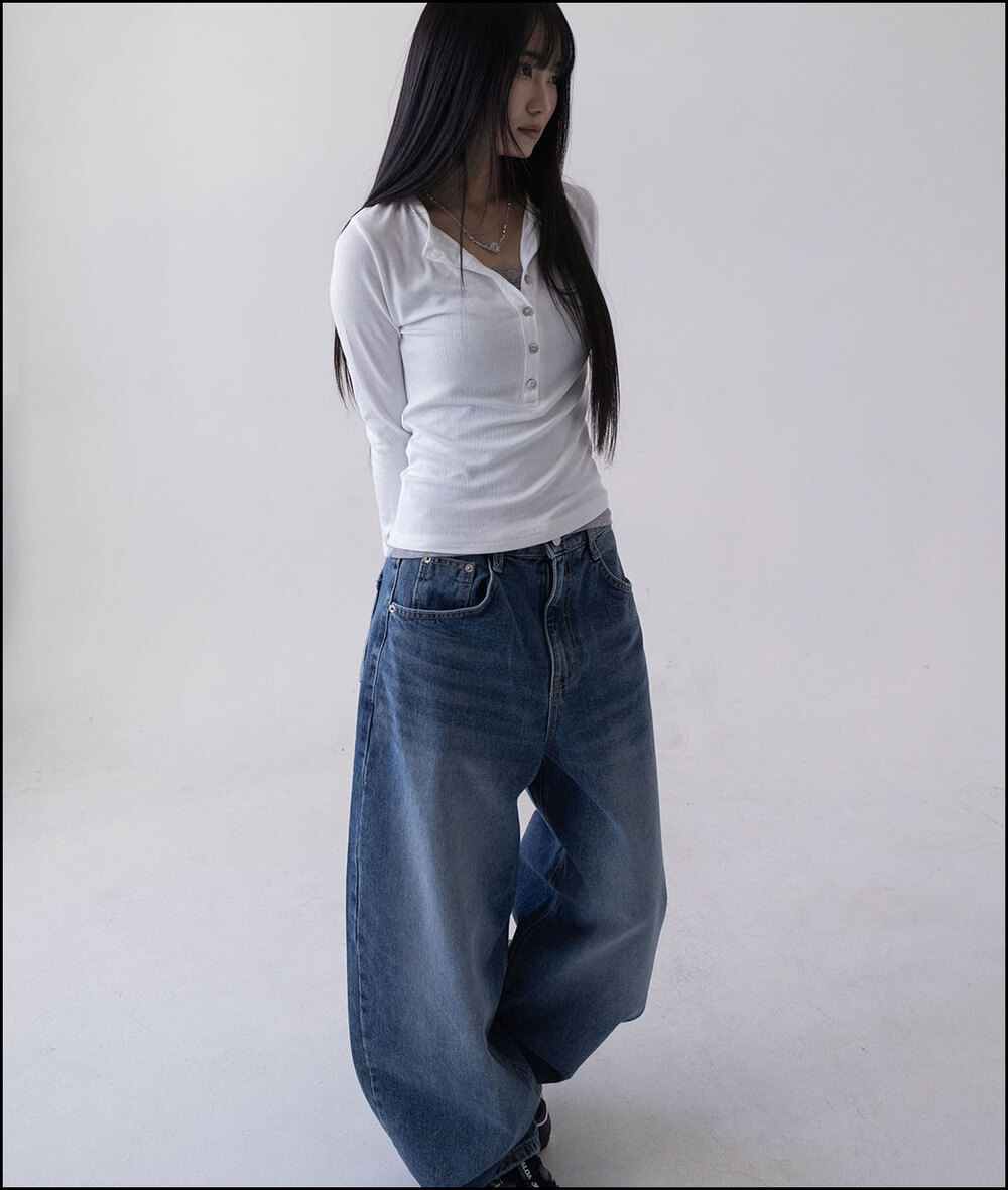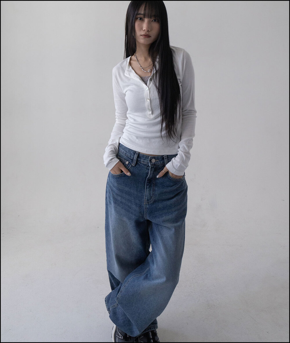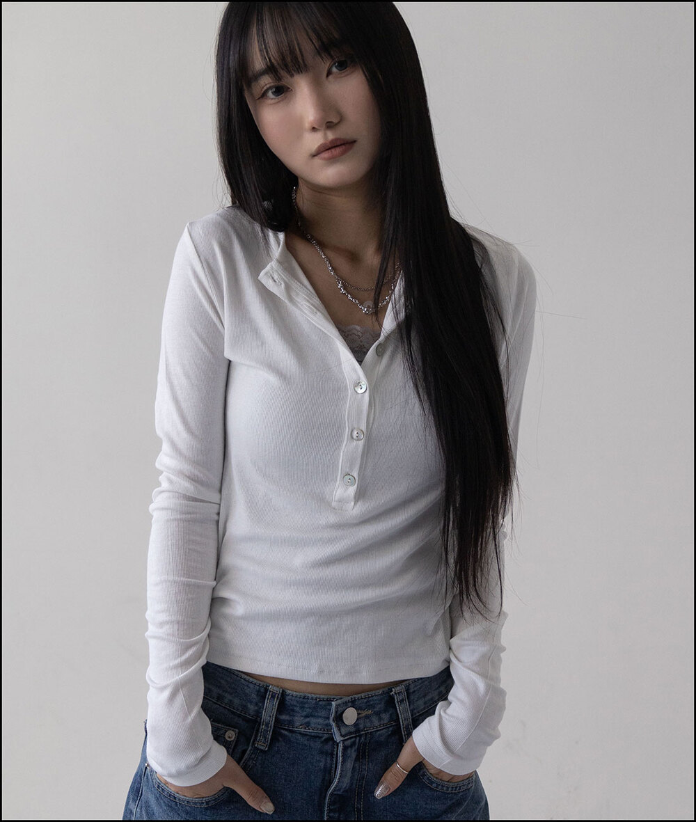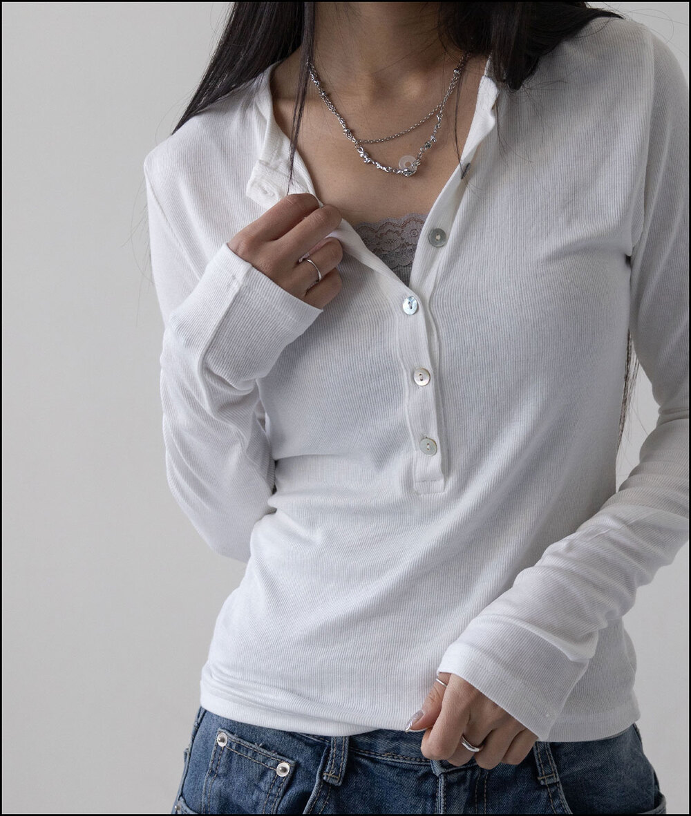 モンクマザーオフパールボタンヘンリーネックロングスリーブTシャツ