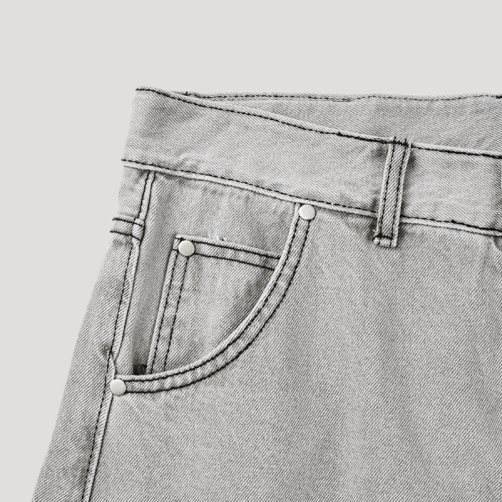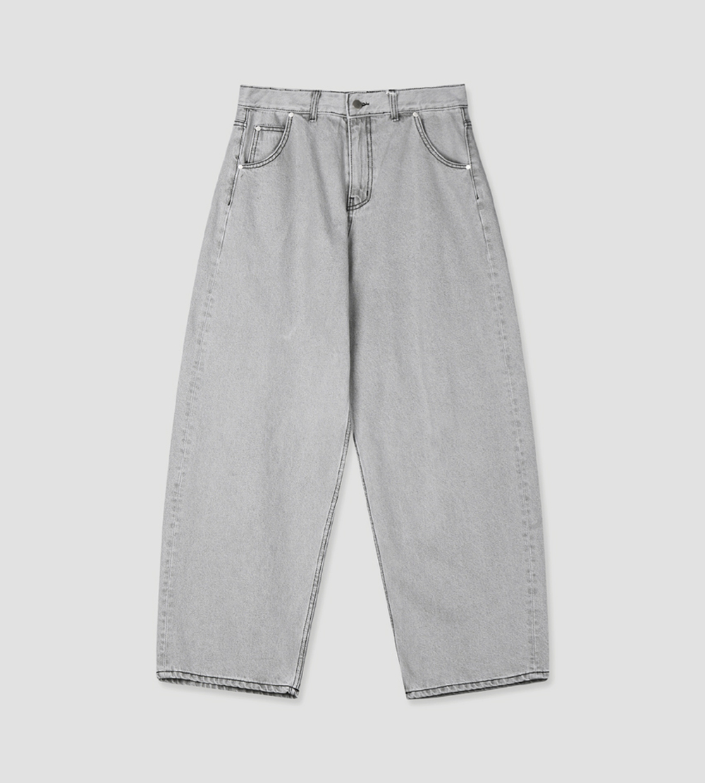 No.1674 バックポケットグレー ワイドデニムパンツ