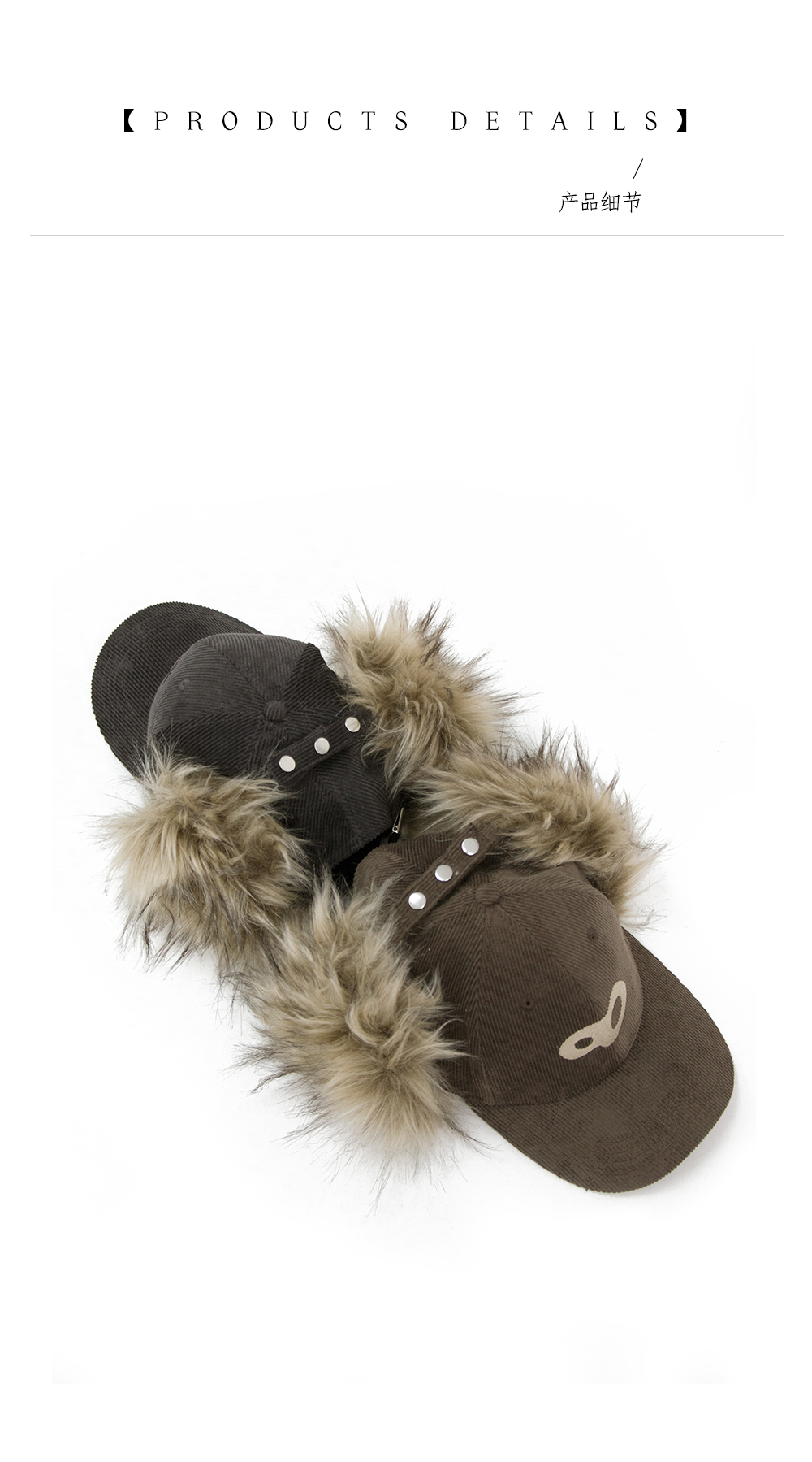 RELABEL コーデュロイレトロロゴエンブロイダードイヤーフラップグラディエントハイパフフォーファーコントラストカラーミリタリースタイルベースボールキャップ