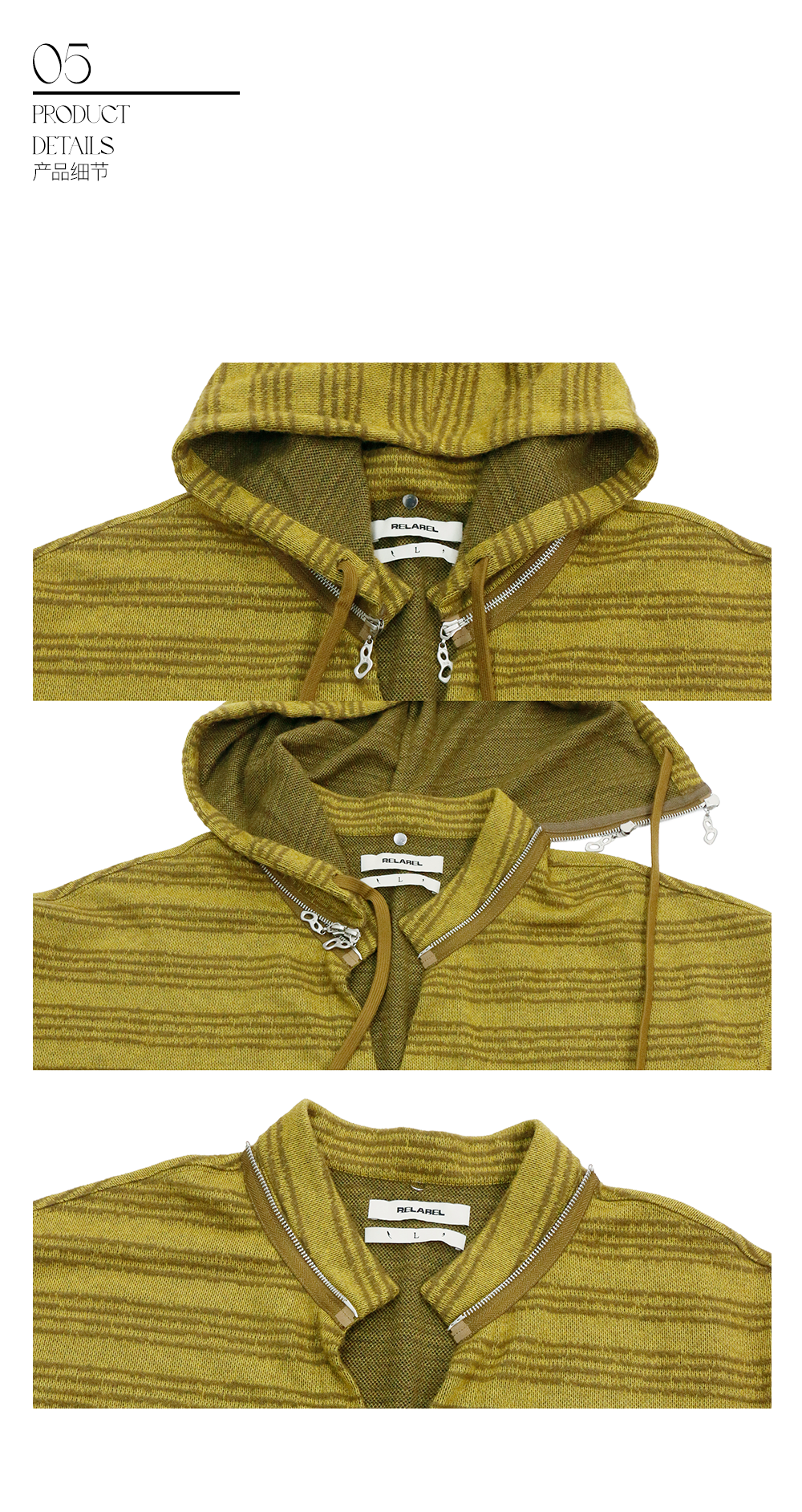 RELABEL (ドリームライン) イエロージャカードストライプカシミヤヤーンマルチシェイプバリアブルプルオーバーニットセーター