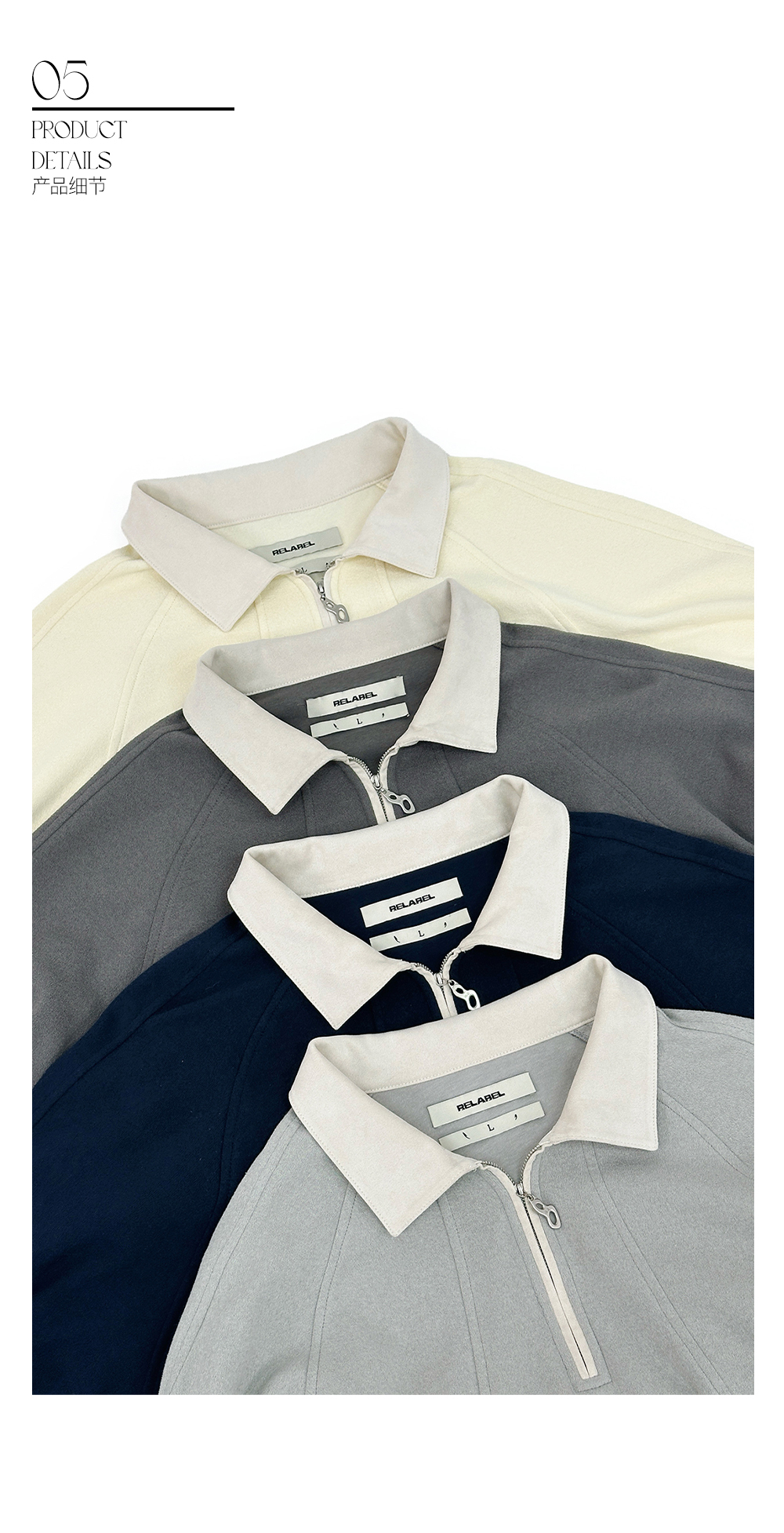 RELABEL (ラベル) カスタムジッパーファステンドテクスチャードファブリックマルチカラーカウハイドベロアアジャスタブルデコンストラクティド長袖ポロシャツ