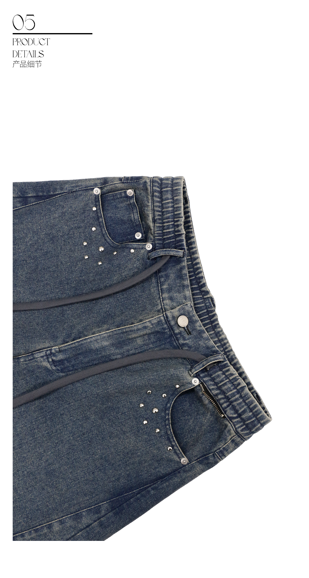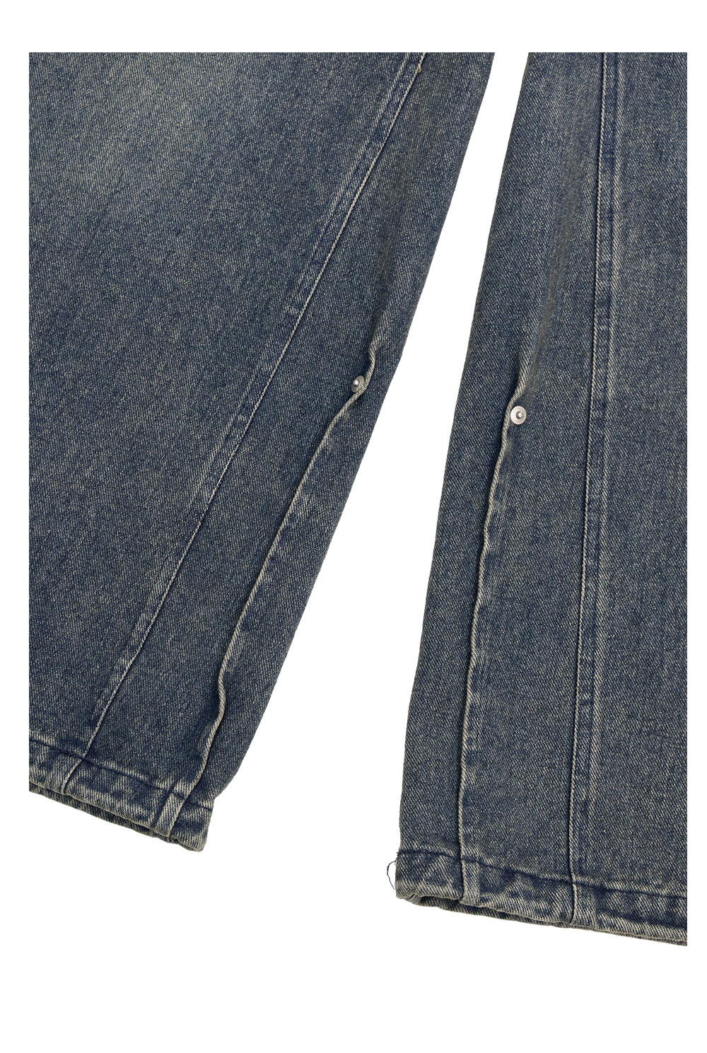 RELABEL (Xukuo) ワイドスリットリバースプリーツリラックスAラインフィットカジュアルスライトリーワイドレッグウォッシュドデニムトラウザーズ