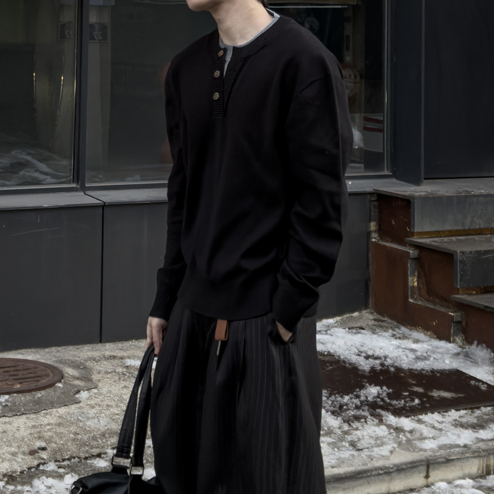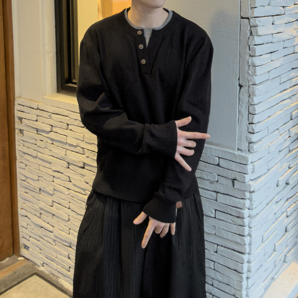 リヴェン レイヤード ヘンリーネック ニット