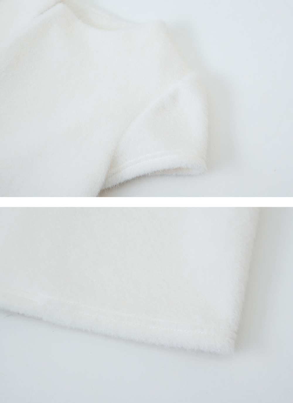 [SHOPPERMADE] スノーヘアリーショートスリーブファーカーディガン