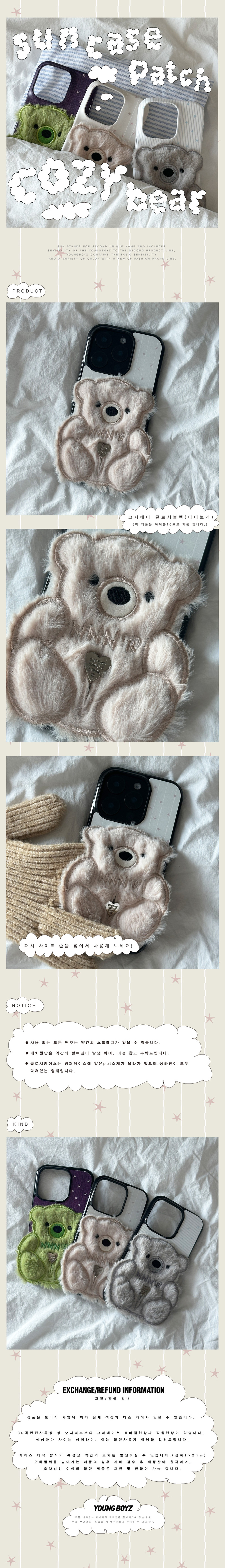 サンケースパッチコージーベア アイボリー (グロッシーブラック)