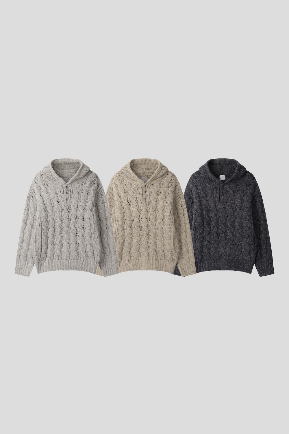 ウィットツイスティドヘンリーネックフーディドニット 3C